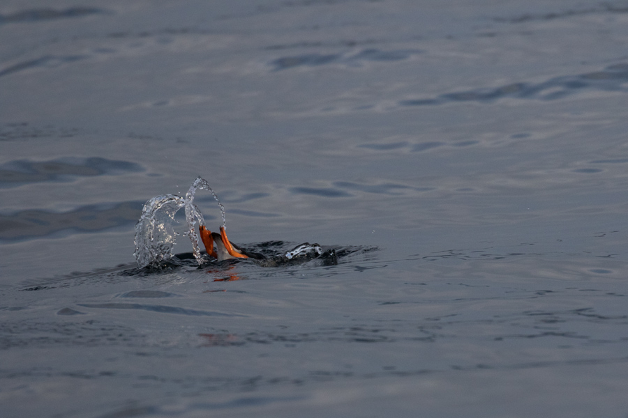 Gleich vorweg, ich habe wieder keine richtig guten Fotos von den Papageientauchern bekommen. Es sind zwar viele da und sie fliegen auch oben kreuz und quer, aber einfach zu schnell. Im Wasser tauchen sie ab, wenn man zu nahe kommt, da bekommt man dann solche Bilder.