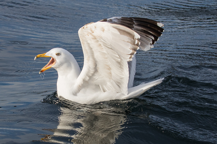 Johann holte etwas Brot hervor, das hat er heimlich seiner Frau weeggenommen, wie er schmunzelnd erzählte. Damit lockte er ein paar Möwen an, wir sollten ja noch unser Erfolgserlebnis haben.