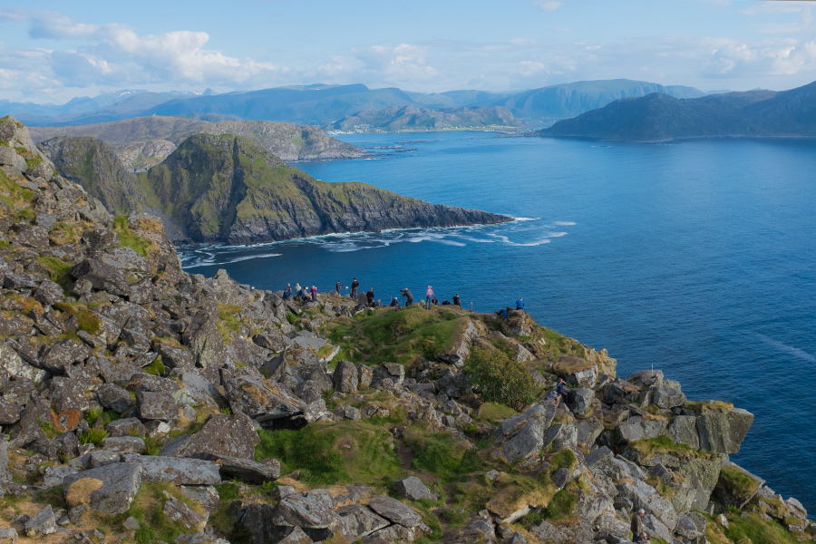 Die Besteigung des Hausbergs hat sich gelohnt. Von oben hat man eine wunderbare Aussicht über den Fjord, auf die Stadt und die umliegenden Inseln.