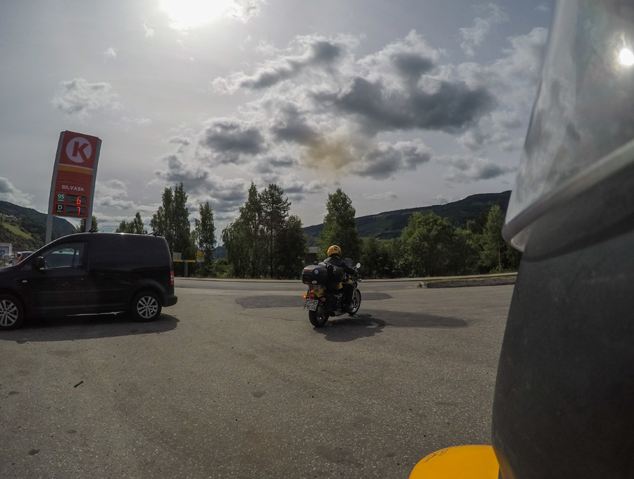 Wir stellten unsere Motorräder ab und gingen zur Kirche. Interessant war für mich, von hier sind es genau 250 Kilometer bis nach Nidaros (Trondheim). Denn genau hier verläuft der Olavsweg von Oslo nach Trondheim.