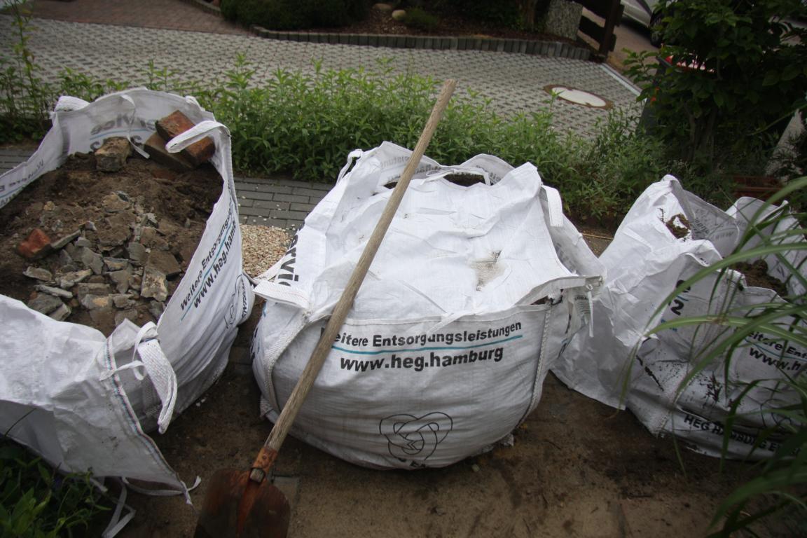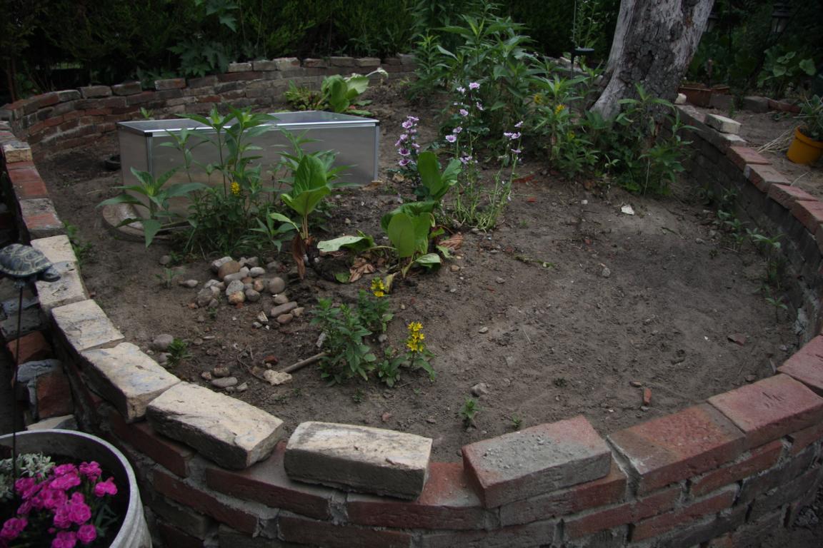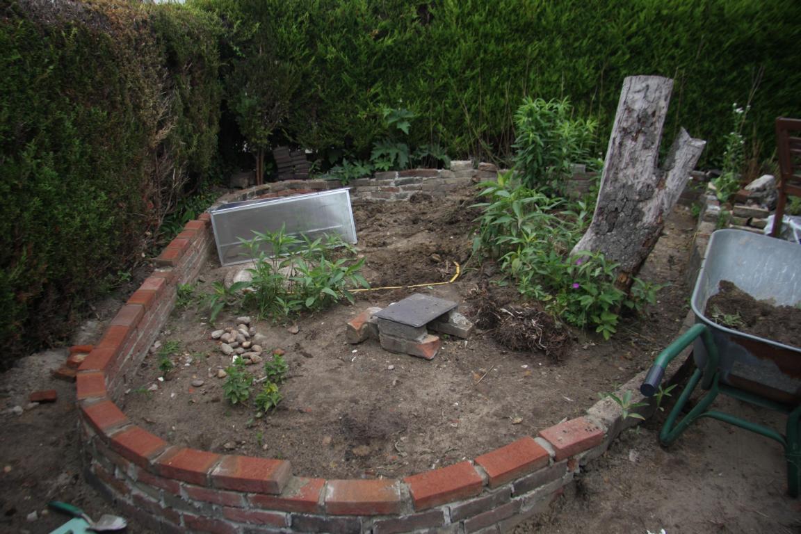 Alles musste raus - ich habe versucht einige Pflanzen in Töpfe umzusetzen und sie zu retten. Auch hinten der Sitzplatz musste weg