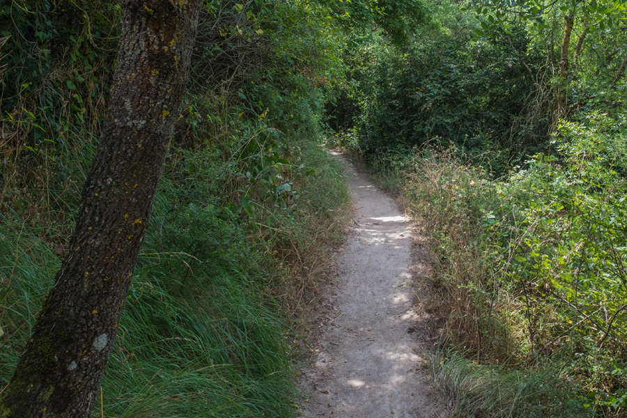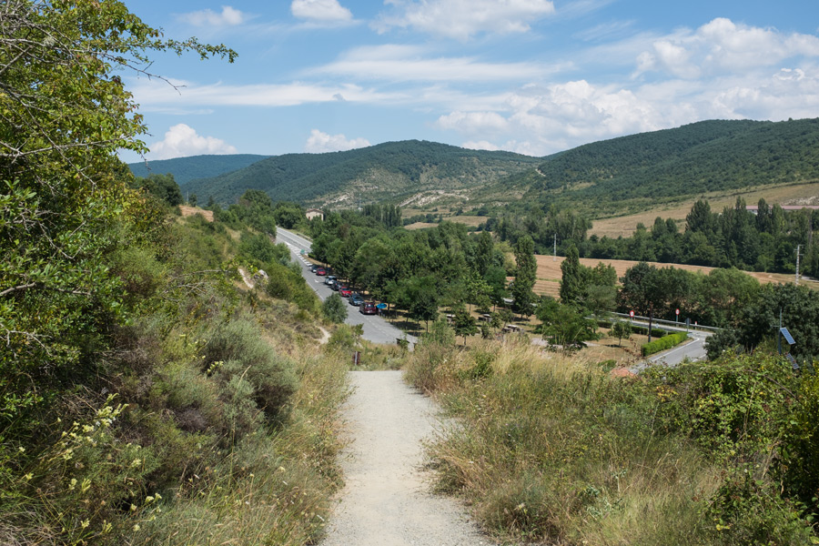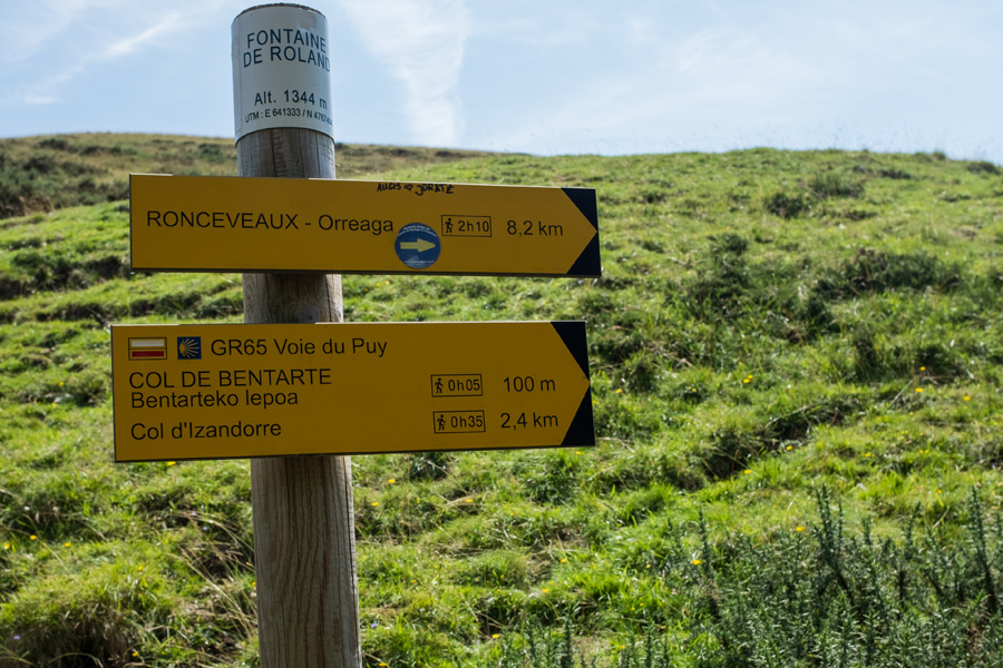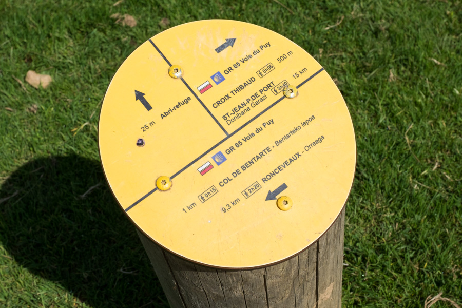 Es gibt auch jede Menge Hinweisschilder, worauf die Entfernungen und die benötigte Zeit steht. Ich müsste ein junges Reh sein, um das so zu schaffen. Aber mittlerweile kann ich die Zeit für mich umrechnen und weiß ungefähr, wann ich wo ankommen werde. Nach knapp 10 Kilometer habe ich Spanien (Navarra) erreicht. (Bild 3)