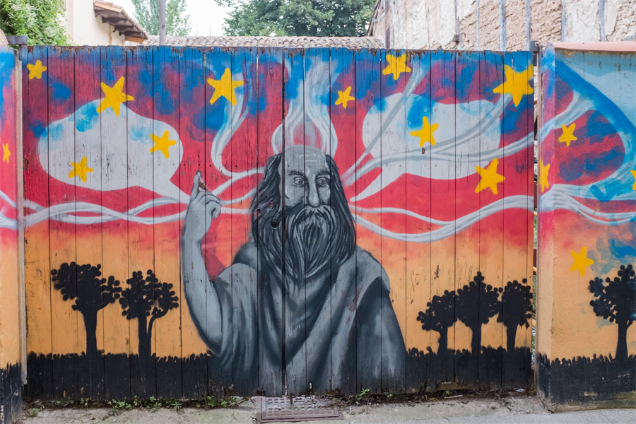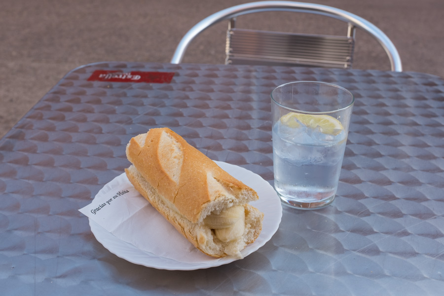 Nach knapp sechseinhalb Kilometern erreiche ich Azofra. Ich brauche dringend eine Pause. Ich entscheide mich für ein Baguette, lasse das Brot aufschneiden und kaufe dazu eine Banane. Sie staunt nicht schlecht, und sie schneidet aber auch gleich die Banane in der Länge einmal durch und legt sie zwischen das aufgeschnittene Brot.