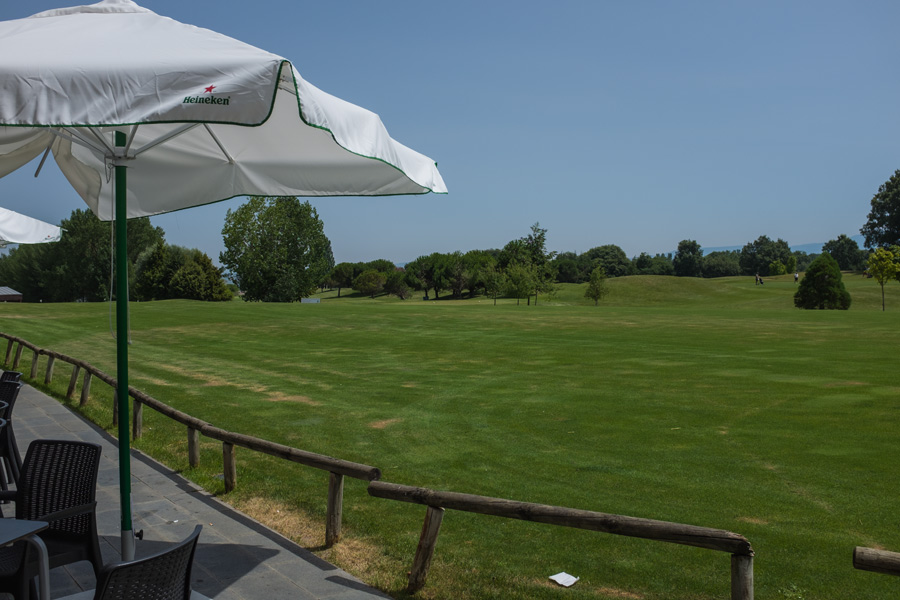 Angekommen in Cirueña suche ich eine Einkehrmöglichkeit, ich brauche eine Pause, was zu trinken und auch eine Kleinigkeit zu essen. Das einzige Restaurant, welches ich finde ist das Golf-Restaurant, denn hier gibt es einen Golfplatz. Dementsprechend passe ich mit meiner Kleidung und dem Aussehen nicht so richtig hinein. Es stand aber draußen ein Schild, dass Pilger willkommen sind.