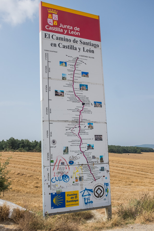 Knapp anderthalb Kilometer weiter kommen wir nach Castildelgado und nach zwei weiteren Kilometern erreichen wir Viloria. Es sind kleine spanische Dörfer. Viele Häuser sind sehr alt, man sieht es ihnen an. Die Menschen sind immer freundlich und es gibt so viele nette Hinweisschilder für die Pilger.