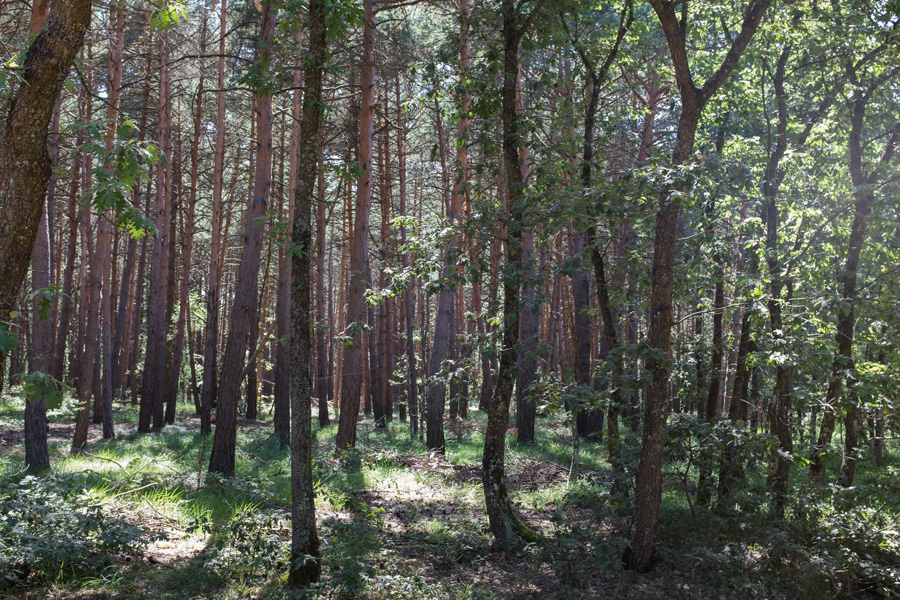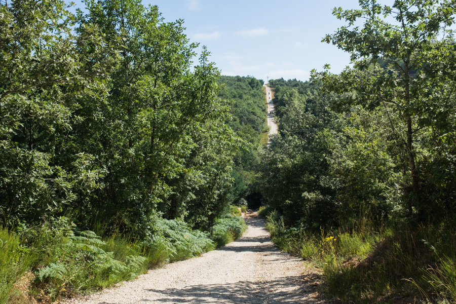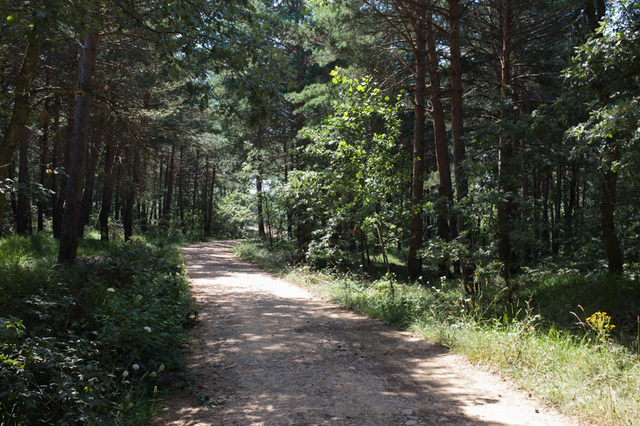 Als ich durch den dunklen Wald gehe, kamen mir ein paar düstere Gedanken, warum ich gerade an Schwarzbären denken musste, ich weiß es nicht. Es war aber kein anderer Pilger zu sehen, sie waren schon alle davon geeilt. Der Weg führt aber nicht durch die dunklen Ecken, sondern es gibt eine große Schneise.