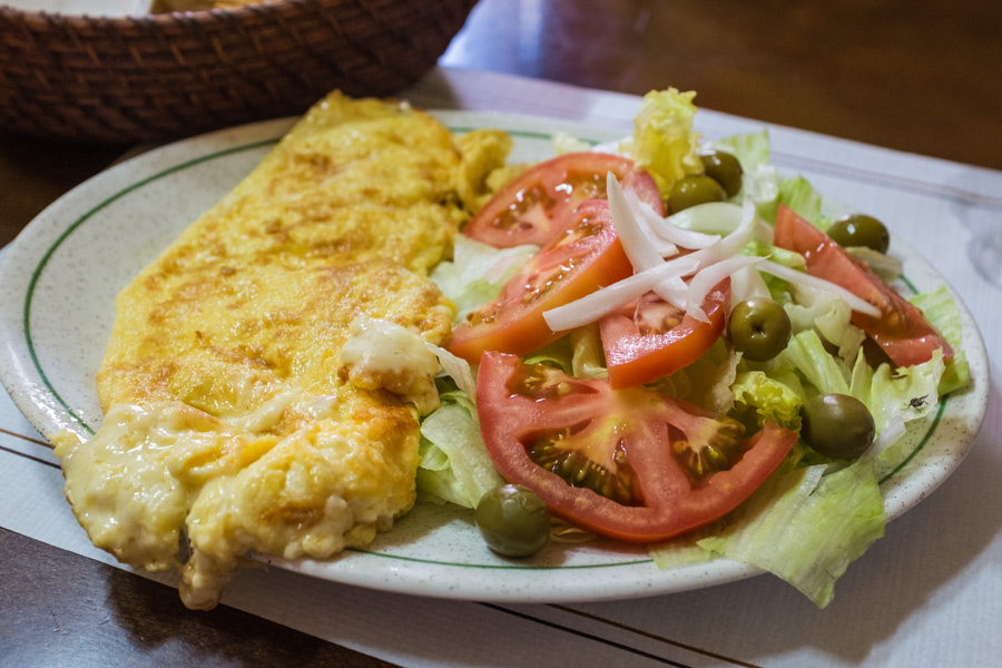 In der Pilgerherberge bekomme ich dann ein Mittagessen, mal zur Abwechlung ein Käseomelette mit Salat und dazu ein Tonic Wasser. Ich lasse mir Zeit mit dem Essen, denn der Weg hatte es in sich.