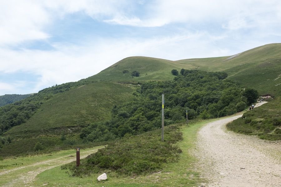 Nach diesem 50 Metern, die ich irgendwie auch schaffte, muss man überlegen, wie man weitergeht, entweder über Geröll und sehr steil durch den Wald, oder mit einem Umweg auf einer wenig befahrenen Asphaltpiste über den Ibañeta-Pass (1057 m). Klar wofür ich mich entscheide, oder? Die jungen Leute nehmen jedenfalls den kürzeren Weg. Im Outdoor von Raimung Joos, wird jedoch davon abgeraten, zu schnell ist ein Unglück passiert. Das sehe sogar ich ein. ;)
