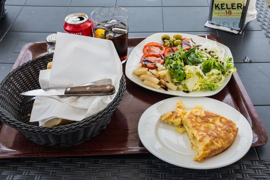 Das Zimmer ist prima, ich habe sogar eine Klimaanlage, das ist gut so. Am Abend gehe ich noch kurz raus in die Tapas-Bar und genieße eine laue Sommernacht.