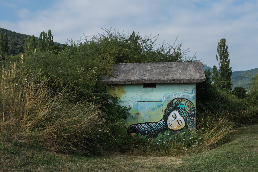 • Man kann hier auch übernachten, die Herberge La Parada de Zuriain liegt dirket am Fluss Agra. Ich gehe aber nichts ins Wasser, was die meisten Pilger hier aber machen, zumindest mit den Füßen.