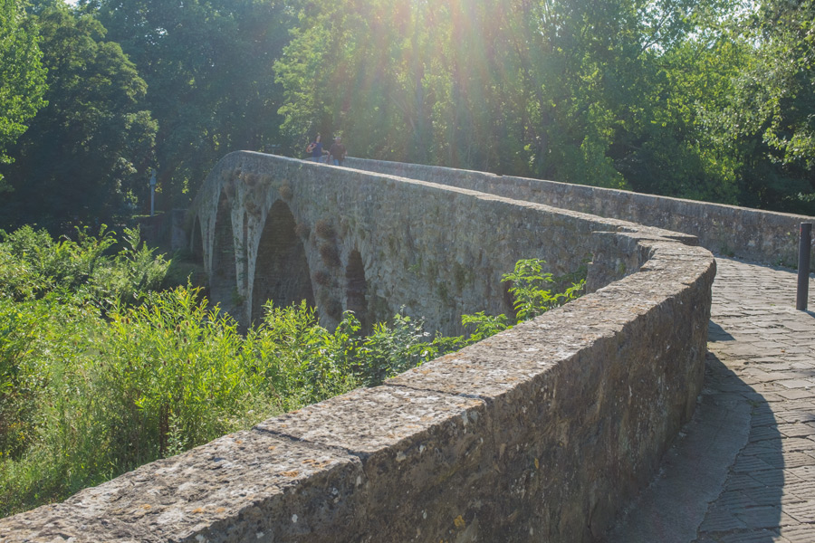 Danach geht es los. Ich muss wieder die Brücke überqueren und mache nun auch die passenden Fotos der mittelalterlichen Brücke. Es geht eine ganze Weile durch ein Indiustriegebiet mit vielen steilen Stufen.