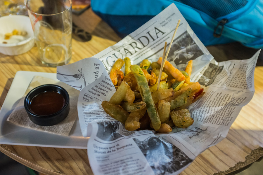 Das Brot lasse ich mir aufschneiden und ärgere mich, dass ich den Göffel (eine Seite Gabel, andere Seite Löffel) nicht im Tagesrucksack habe. So kaufe ich mir einen Löffel, denn ich muss das Zeug ja irgendwie essen. Es ist mir natürlich zu viel, aber ich biete es an wie Sauerbier, keiner der anderen Pilger wollte etwas abhaben. Daher habe ich es tapfer aufgegessen.