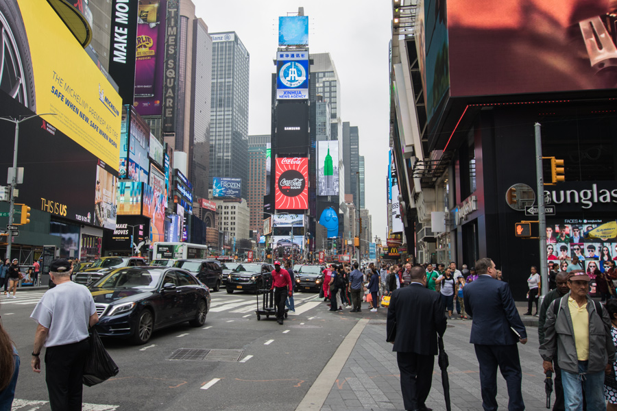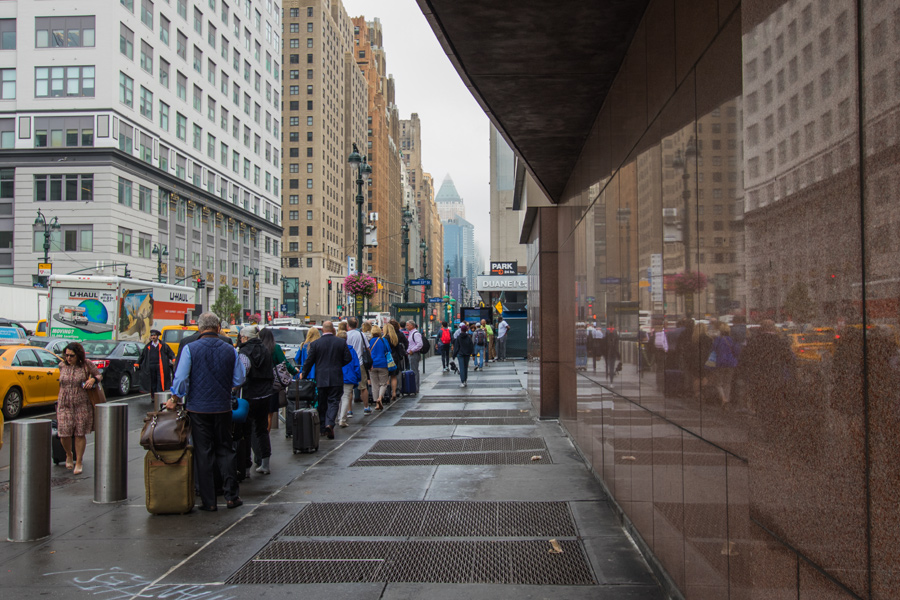 Es regnete! Am Terminal 4 stand ein Express-Bus. Ich meinte lesen zu können, dass er nur zum Grand Central fuhr. Das war mir aber zu weit weg von meiner Unterkunft, die eher in der Nähe vom PENN-Station liegt.Also ging ich ins Terminal und fragte an dem Counter von dem Express Bus, wo ein Bus zum Penn-Station abfährt. Sie sagte, dieser Bus hier. Ich habe noch einmal nachgefragt, sicher er hält am Penn-Station. Ich kaufte also gleich eine Rückfahrt mit und war zufrieden, denn so sparte ich ein paar Dollar. Hurry up, the bus is waiting!
