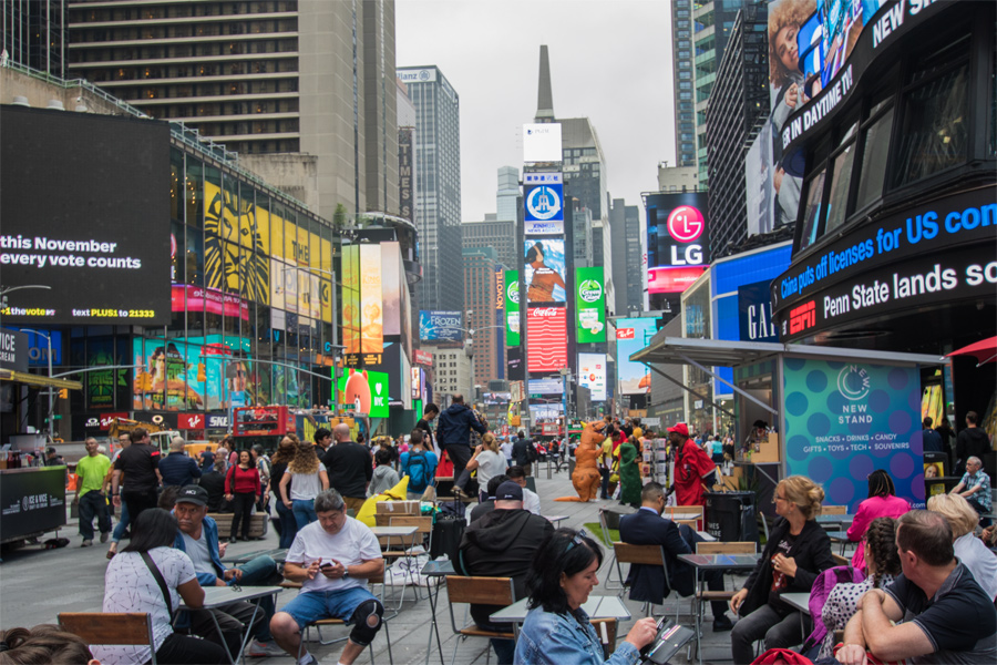 Die Sicht war so mau, dass man vom Anflug auf New York so gut wie nichts sah. Die Wolken hingen fast bis zum Boden. Angekommen auf dem Flughafen JFK holte ich meinen Koffer ab und wollte einen Hotel-Shuttle buchen. Da ich irgendeine Hostelähnliche Unterkunft gebucht hatte, war die Adresse nirgendwo auf der Liste drauf. Ich habe nicht geschaltet, ich hätte ja ein Hotel in der Nähe sagen können, aber mir fiel auf die Schnelle keins ein.