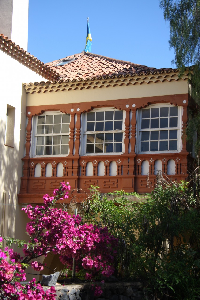 Heute strahlend blauer Himmel und wir haben uns aufgemacht zum Jardin Aquatico: Wassergarten beim Taoropark. Um dorthin zu gelangen heißt es Treppen steigen, den er liegt im oberen Bereich von Puerto de la Cruz. So kraxeln wir etliche Stufen hoch und werden dann mit einem tollen Blick auf den unten liegenden Ort belohnt