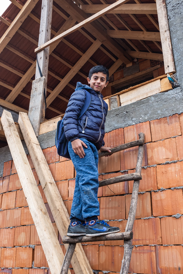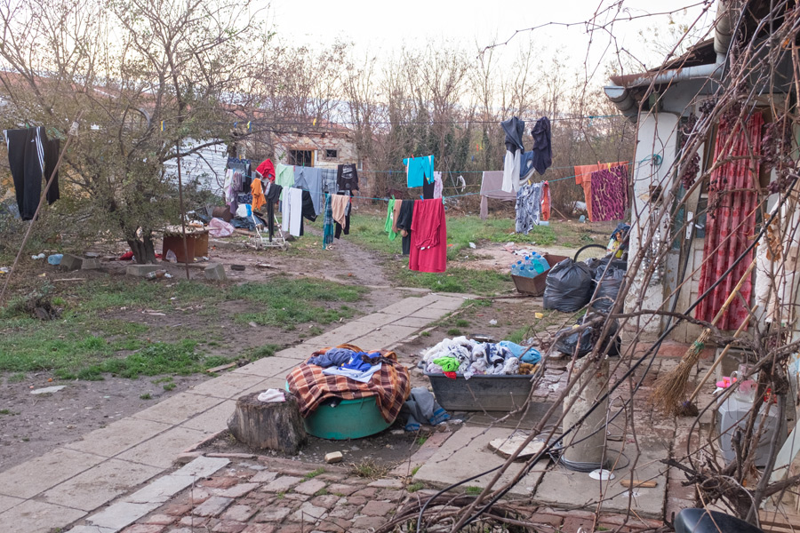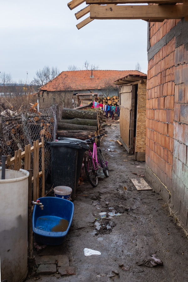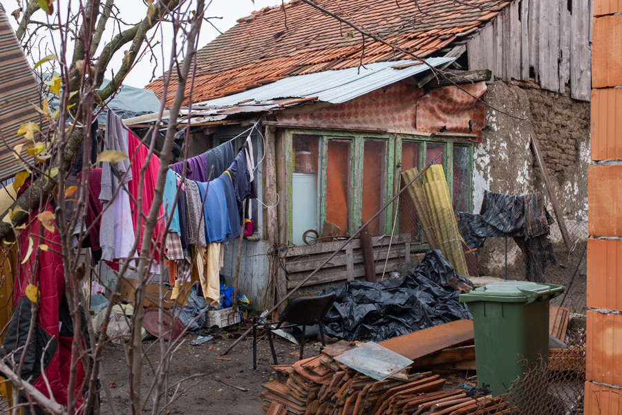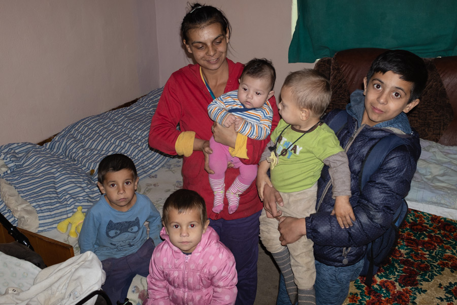 Die letzte Familie hat ungarische Wurzeln. Da leben Großmutter mit Sohn und Tochter mit zusammen 6 Kindern in einem einzigen Raum. Hier lassen wir auch Lebensmittel und den Sack Kartoffeln. Während sich die Erwachsenen unterhalten, widme ich mich der Fotografie. Ich habe arge Probleme, denn ich muss blitzen, aber der Blitz streikt sehr oft.