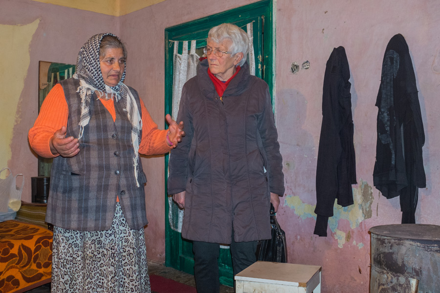 Von Bencecu de Jos fahren wir nach Satchinez, auch da war ich schon einmal, denn hier wohnt eine behinderte Frau, die in einem Heim aufgewachsen ist und seitdem von Hilfe für Kinder betreut wird. Wir müssen den Wagen am Straßenrand stehen lassen und gehen dann einen Pfad entlang. Hier gibt es keinen Überfluss. Florina lebt in einem Zimmer, karg eingerichtet, mit einem Ofen und Holzbefeuerung.