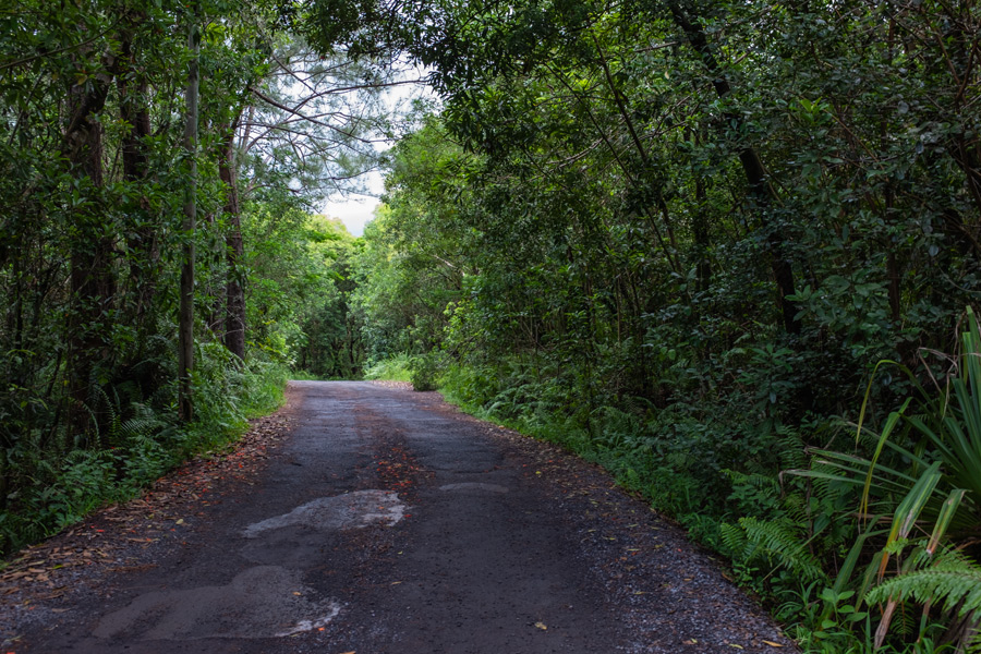Es geht in den Jardin des Parfums et Epices in der Nähe von St Philippe, genau genommen zwischen den Orten Baril und Mare Longue. Ein Hinweischild auf der linken Seite führt uns in den Wald. Es ist ein Waldweg und dementsprechend ruckelig.