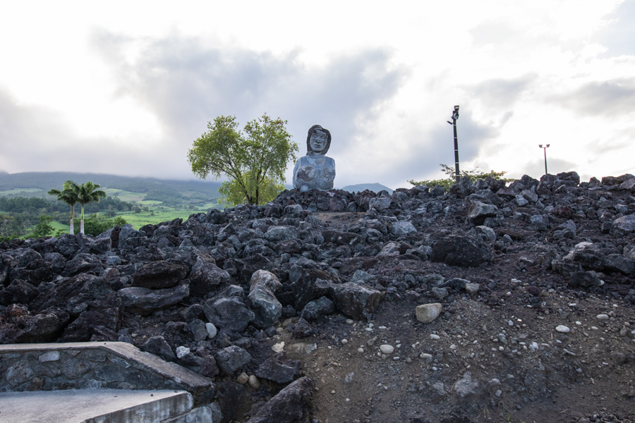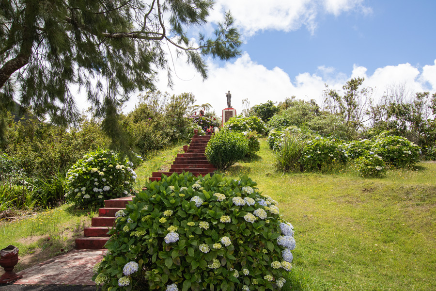 Wir passieren den Ort Le Tampon und weitere kleine Orte. Kurz vor la Plaines des Palmistes sehen wir diese Statue auf einem Hügel. Wir halten an und schauen sie uns an. Es ist die Statue zu Ehren des Heiligen Expédite (Expeditus) Von diesem Heiligen haben wir vorher noch nie gehört. Er wird aber hier auf Reunion sehr verehrt. Er war ein römischerZenturio in Armenien, der wegen seines Glaubens 303 unter Diokletian gemartert wurde.