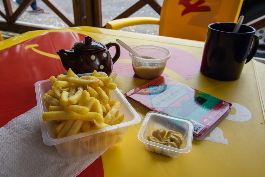 Die Einwohner von Reunion nutzen jede freie Minute und jede Lücke für ein Picknick. Sie halten an den kleinsten Stellen, selbst auf enger Straße packen ihre Tische, Stühle und das Essen aus und machen es sich gemütlich.