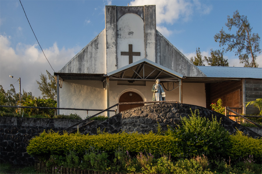 Es geht nun weiter in südlicher Richtung, noch vor der Ortschaft Ste Rose entdecken wir diese Kirche, die wie eine große Hochzeitstorte aussieht. (Bild 1 Église Sainte-Anne de Saint-Benoît) Wunderschön ist sie. Wir gehen auch rein, es finden aber gerade Gebete statt, so dass wir nicht durch Fotografieren stören wollen.