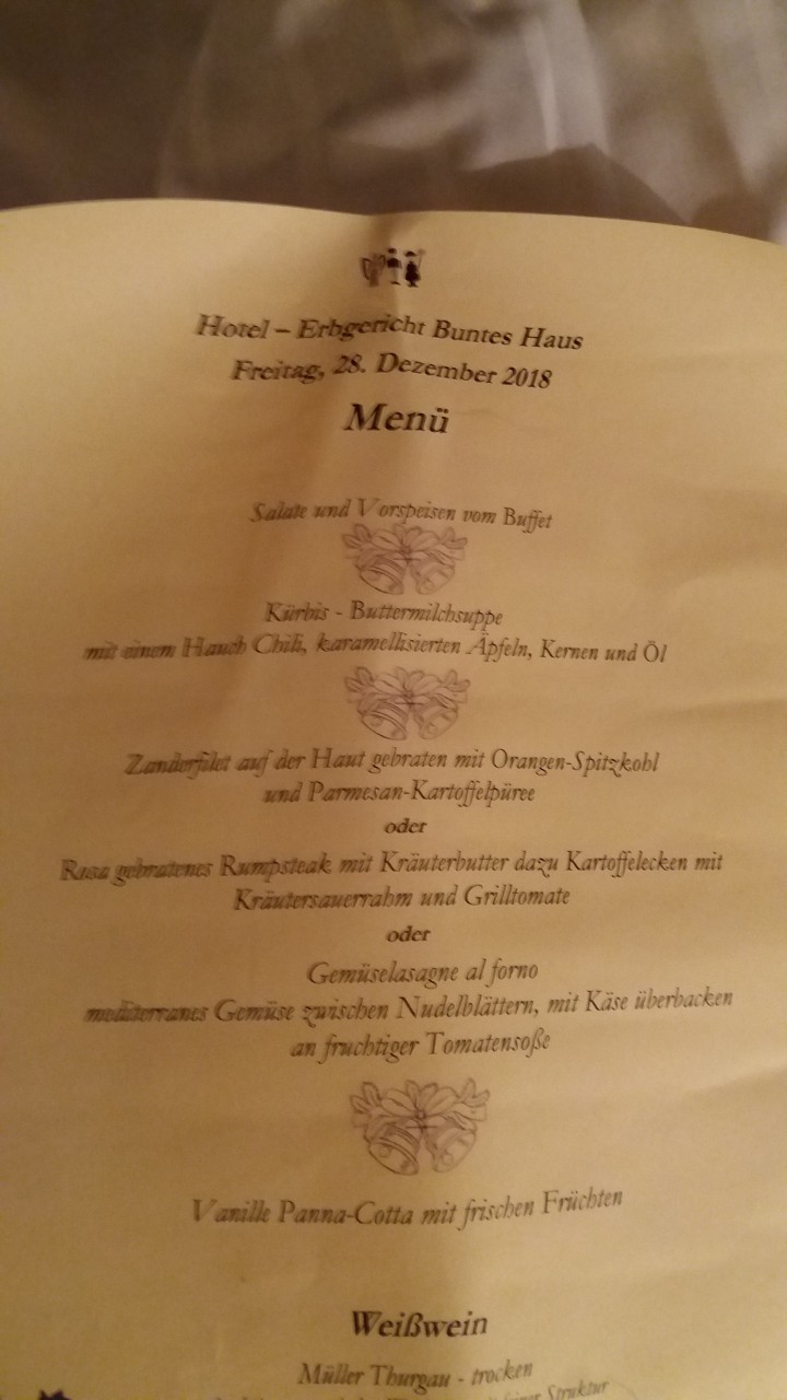 . Wir wohnen im http://www.buntes-haus.com . Ein sehr schönes Hotel, mitten im Ortskern. Bleiben werden wir genau eine Woche bis 04.01.