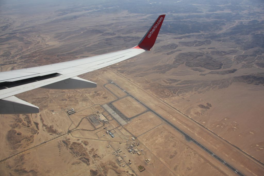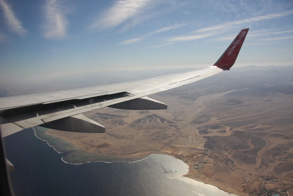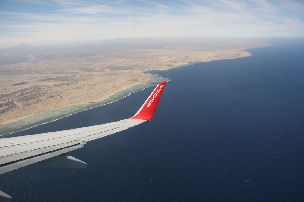 EIngecheckt haben wir schon gestern. WIr sind gut von Okke zum Flughafen gefahren worden. Dann stehen wir vor einer ellenlangen Schlange vor dem einzigen!!! Schalter von Eurowings, der geöffnet war. Das können die doch wohl nicht ernst meinen! Es fliegen mehrere Maschinen von EUrowings ab, zumeist innerhalb EUropas und unsere nach Ägypten, und ein schalter? Wir sind 1 1/2 Stunden vor dem Abflug da und müssen nur die Koffer loswerden. Nach einer halben Stunde öffnen sich zwei weitere Schalter und dann geht es voran. Lange warten bis zum Einsteigen mussten wir allerdings nicht mehr. Okke hatte uns eingecheckt und Gang und Fenster geordert. DIe Maschine ist nicht voll, der SItzabstand furchtbar - wir fliegen in einer ehemaligen Air Berlin Maschine mit Eurowings gepowert von TUI.