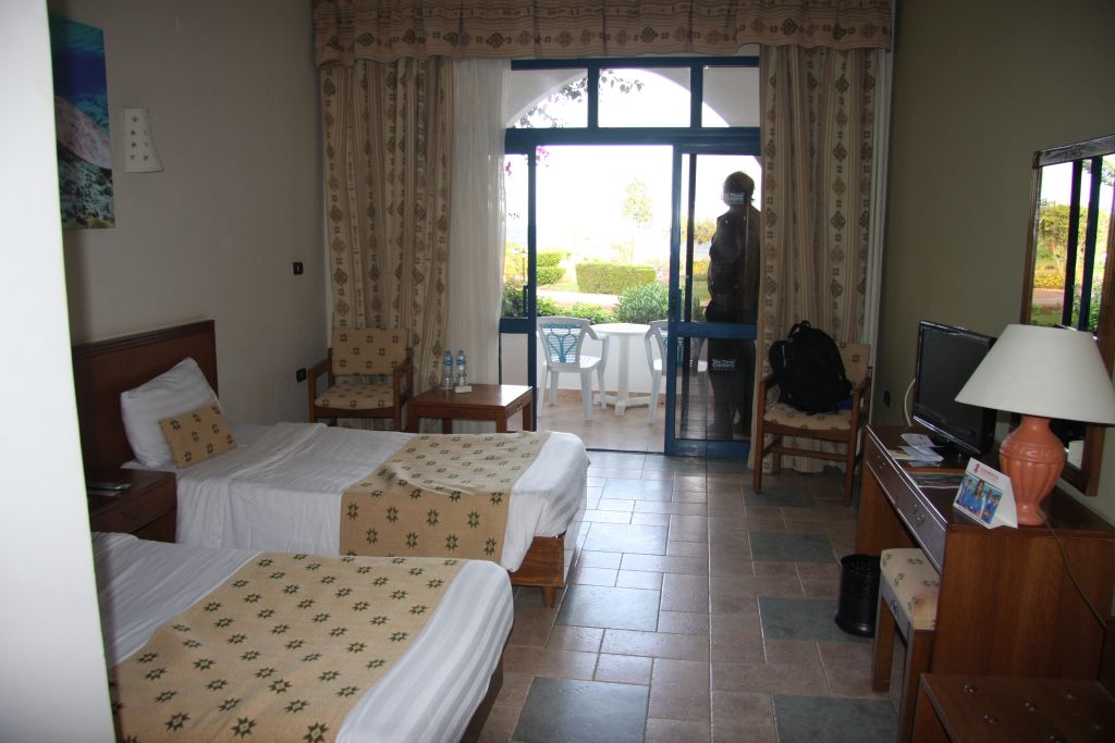 Ist das eine Reptilienspur? Ich finde, die Hotel Anlage sieht gut aus und auch euer Zimmer ist recht großzügig. Mit dem Fliesenboden ist es auch gut sauber zu halten. Ich wünsche euch eine schöne Zeit zum Ausruhen.