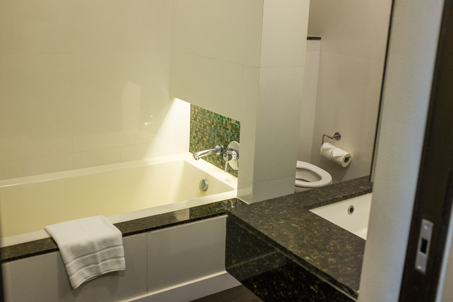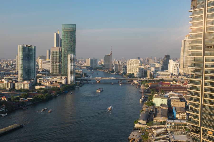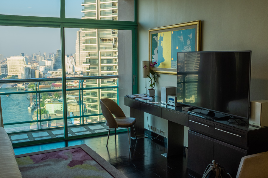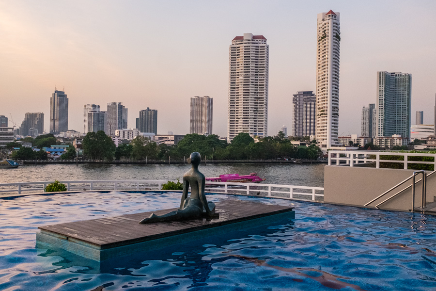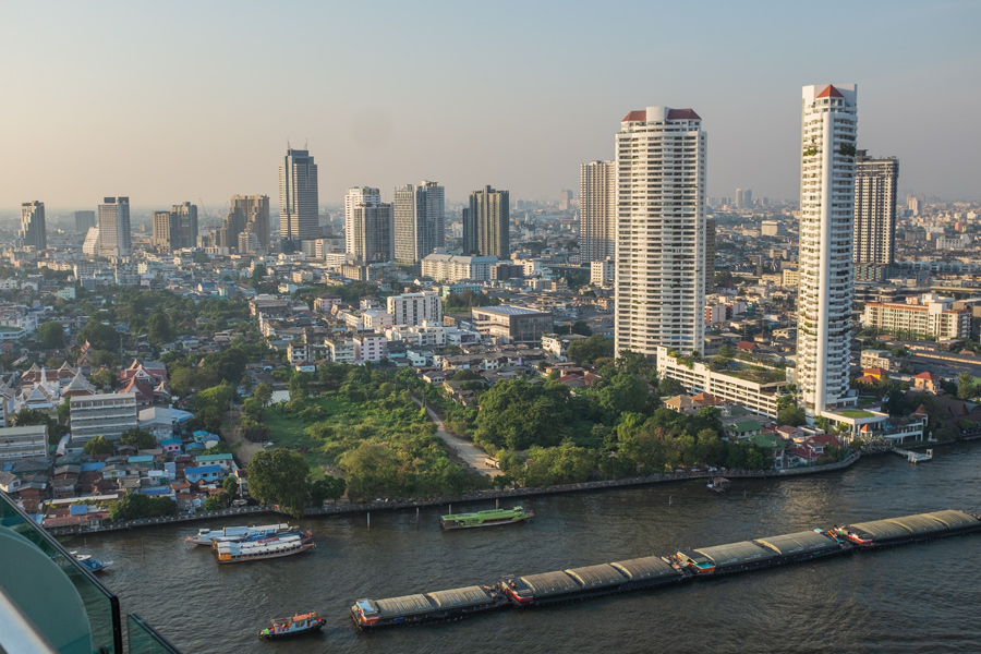 Unsere Unterkunft ist super, wir haben ein Zimmer im 29. Stock mit Blick auf den Fluss. (Bild 2 + 6) Im 6. Stock gibt es einen Pool (Bild 4 + 5) und im 36. Stock gibt es ein Restaurant (Bild 3), da mussten wir natürlich auch als erstes hin, um einmal zu schauen, vor allem natürlich die Aussicht!