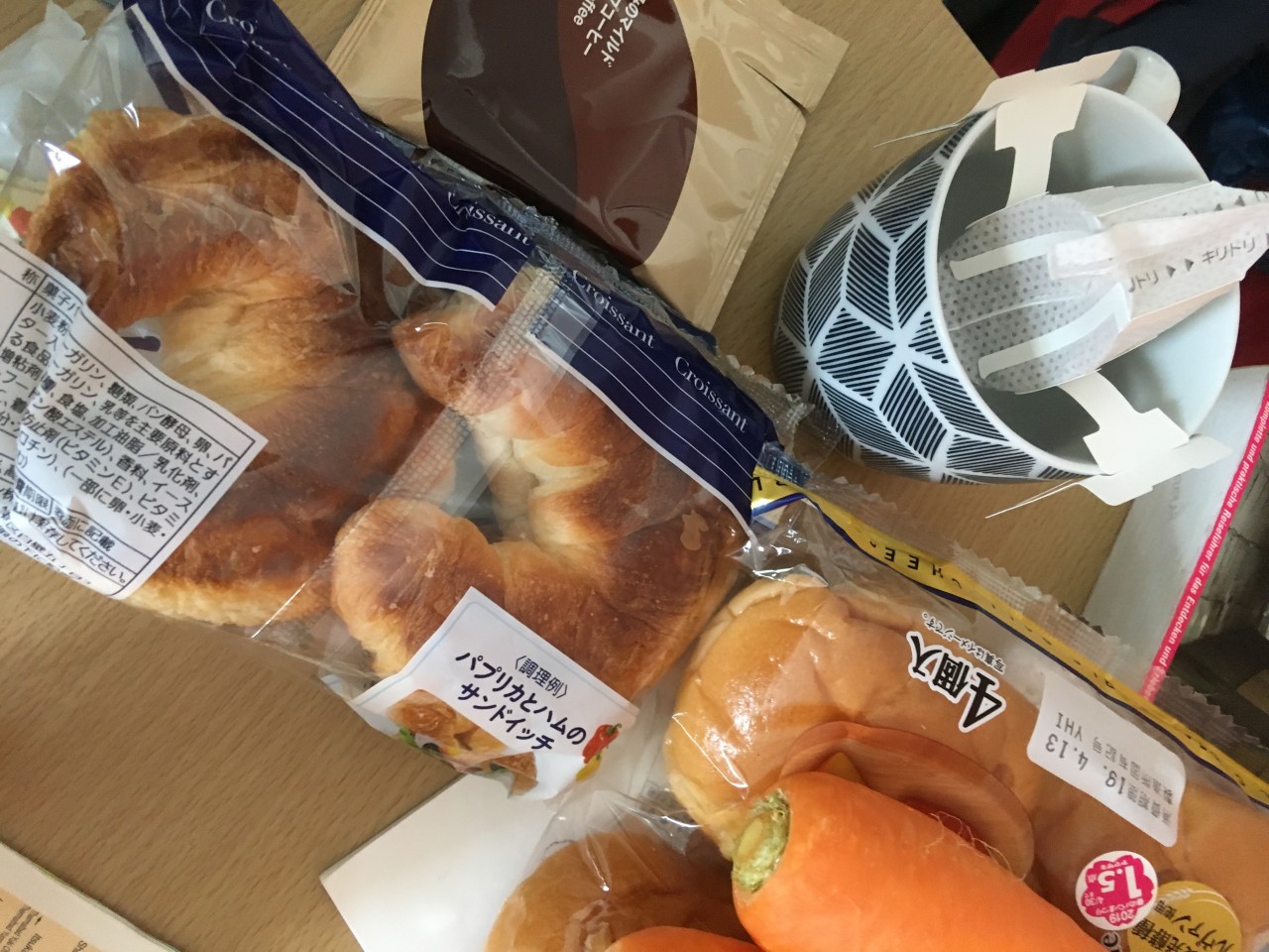 Notlösung ist richtig. Hat mit unseren Croissants nichts zu tun. Sie sind ungefüllt und sehr weich. Auch die zweite Sorte, mit ein bisschen Käse besprenkelt Schmeckt nicht anders. Deshalb haben wir uns ein Kilo Karotten dazu gekauft. Zu Hause wird es wieder gesünder.