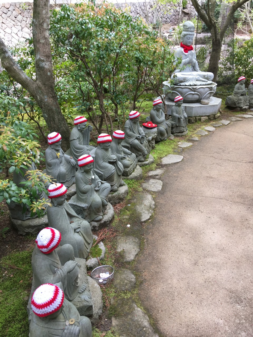 Nach dem Jizo-Kult soll dieser Kinder, Pilger und Reisende. An den gehäkelten Mützenkann er Kinder am Geruch der Mützen erkennen und die Kinder unbeschadet ins Paradies brigen.