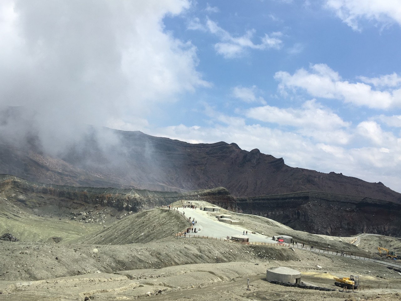 Heute waren wir auf einem der aktivsten Vulkane der Welt, dem Nakadate, der zum Aso Vulkangebiet gehört . Auf 1200 m Höhe wehte ein eiskalter Wind, was meine Erkältung auch nicht so gut tat. In der Luft lag Schwefelgeruch.