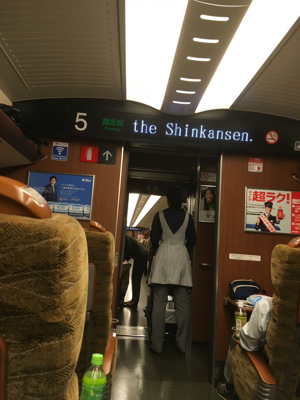 Auf der Zugfahrt dorthin kam eine junge Dame mit einem Schild vorbei. Sie gab es einem in die Hand und schoss dann mit dem Handy Fotos.