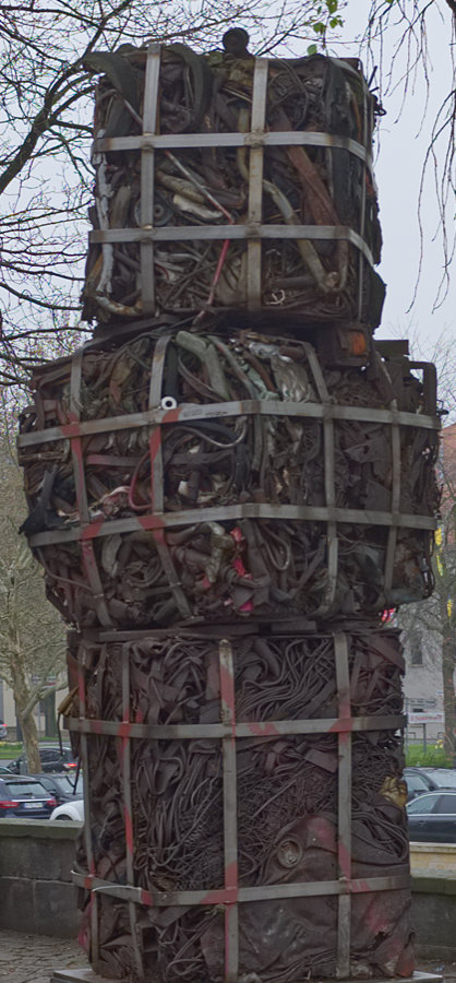 Ja, es war AUCH Schrott dabei und ein Kunstwerk ist es auch, aber es stammt nicht aus einer Schrottpresse, man denke da mal an die Stadt, in der ich heute war.