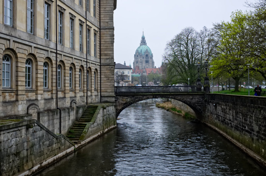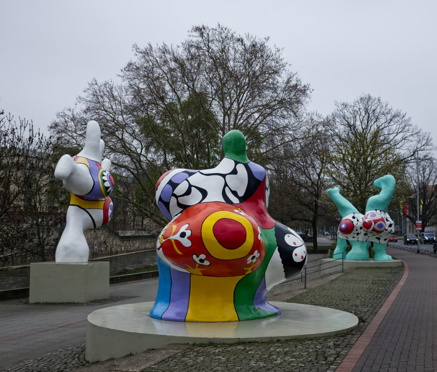 Ich nutzte die Zeit, um ein paar Bilder zuschießen. Auf der anderen Seite der Leine stehen nämlich die Nanas (Niki de Saint Phalle), einst regte sich jeder darüber auf, als sie 1974 aufgestellt wurden mit ihren dicken Rundungen, mittlerweile sind sie nicht mehr wegzudenken. Sie gehören zu Hannover.