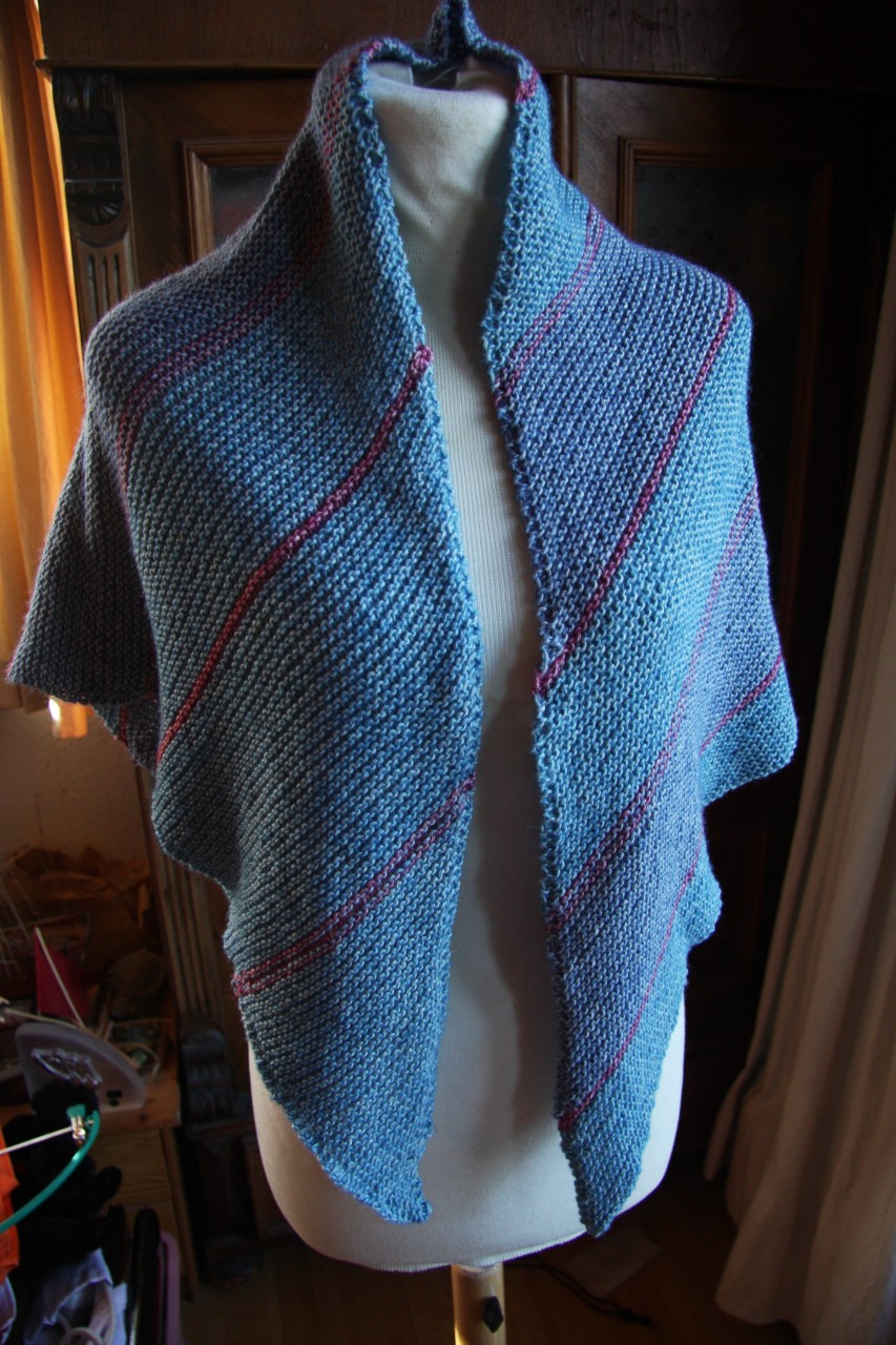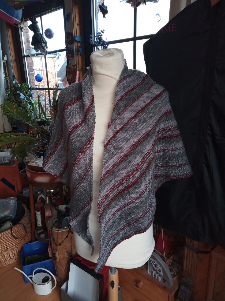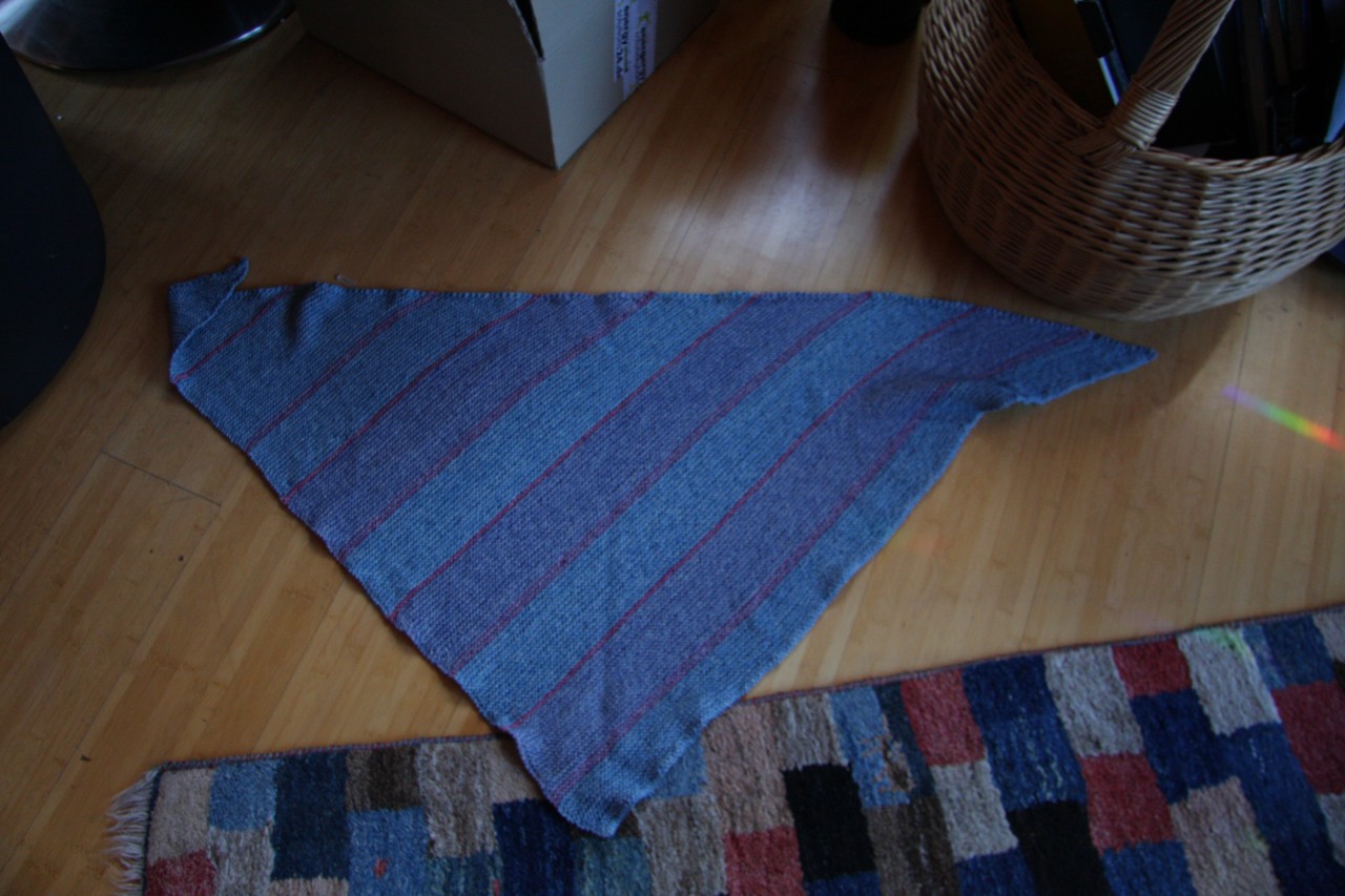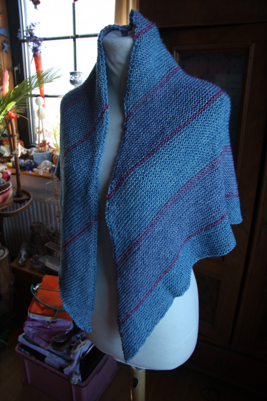 Meiner Freundin Uschi habe ich zum Geburtstag einen Gutschein für ein Dreieckstuch geschenkt - sie konnte sich aussuchen welche Farben und welche Wolle. Blautöne und Baumwolle sollte es sein. Gut das ich da gerade etwas hatte. Das ist das Ergebnis, was wir gestern bei ihr vorbeigebracht haben... ihr gefiel es und vielleicht reist das Tuch sogar mit nach China