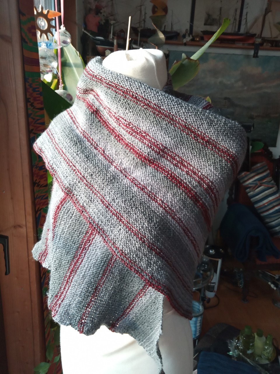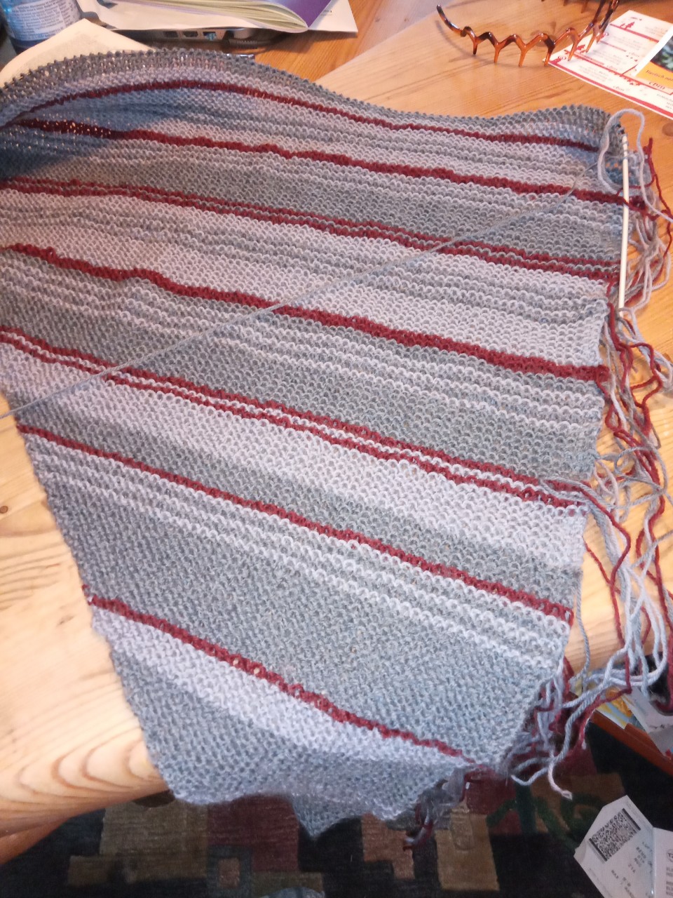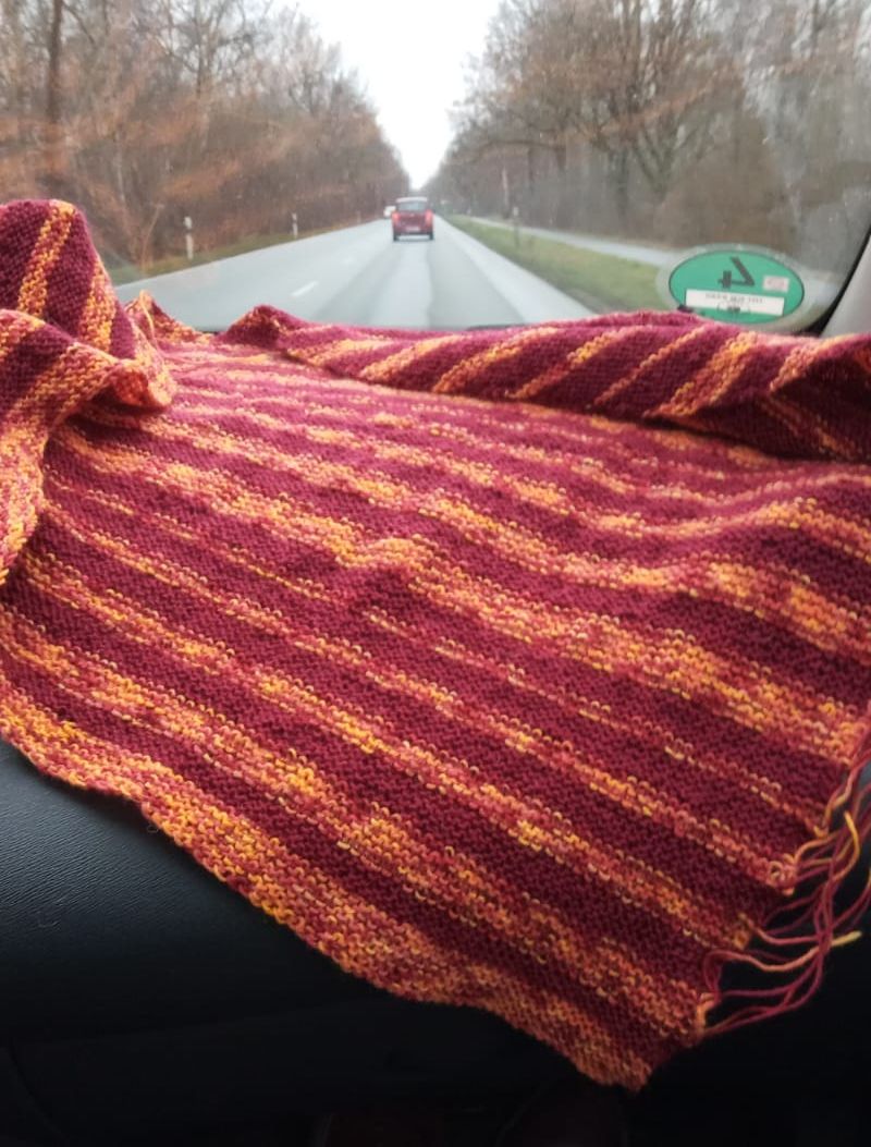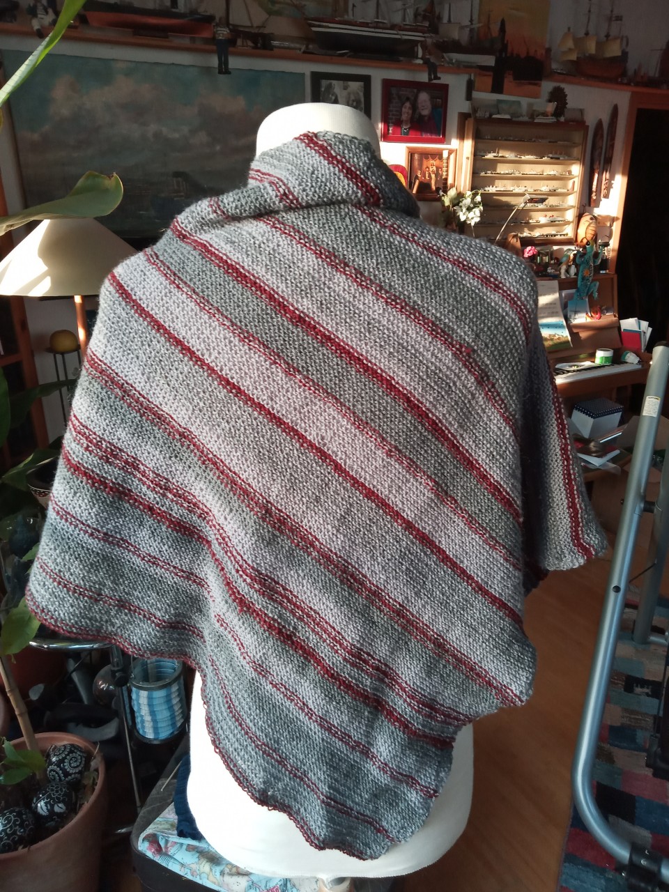 Meiner Freundin Uschi habe ich zum Geburtstag einen Gutschein für ein Dreieckstuch geschenkt - sie konnte sich aussuchen welche Farben und welche Wolle. Blautöne und Baumwolle sollte es sein. Gut das ich da gerade etwas hatte. Das ist das Ergebnis, was wir gestern bei ihr vorbeigebracht haben... ihr gefiel es und vielleicht reist das Tuch sogar mit nach China