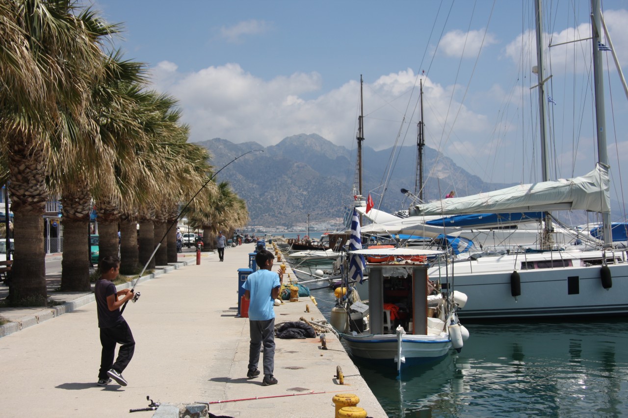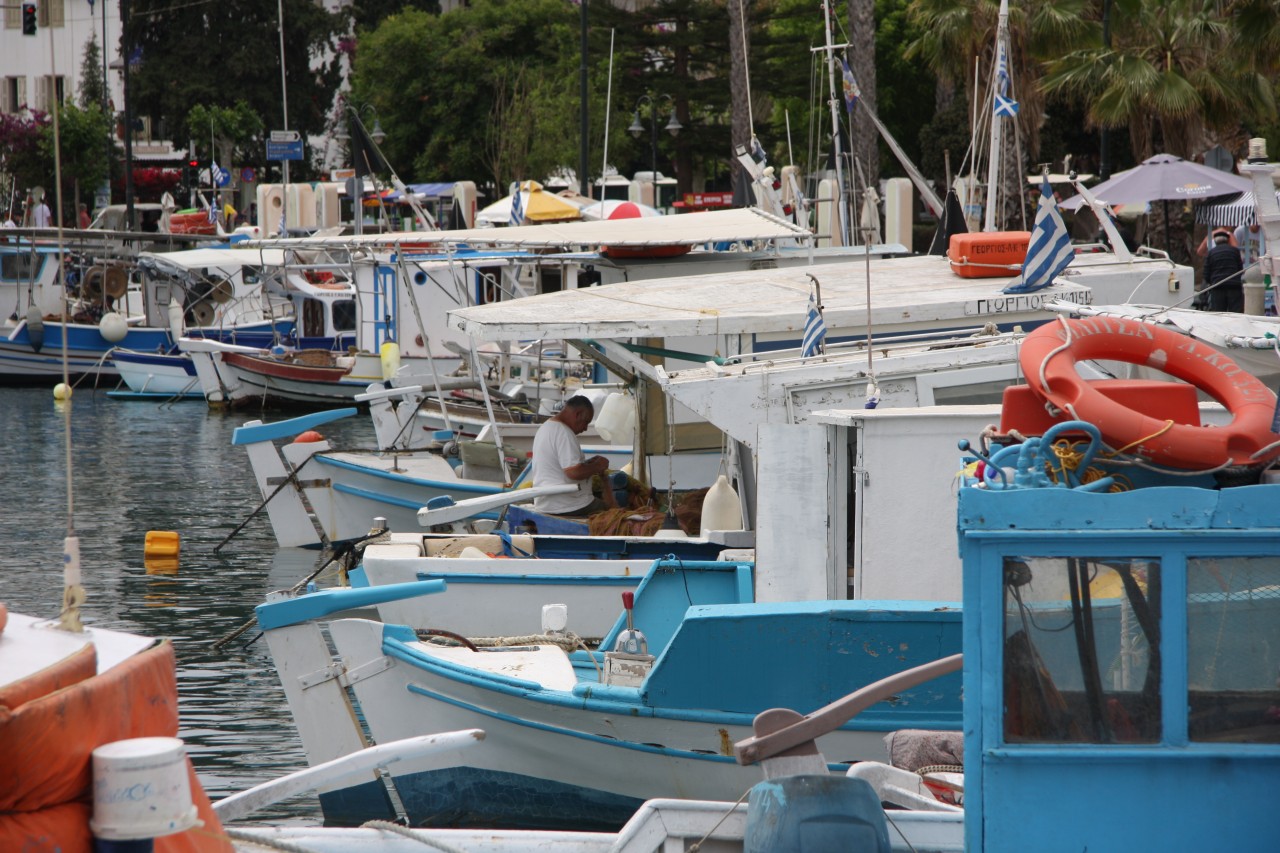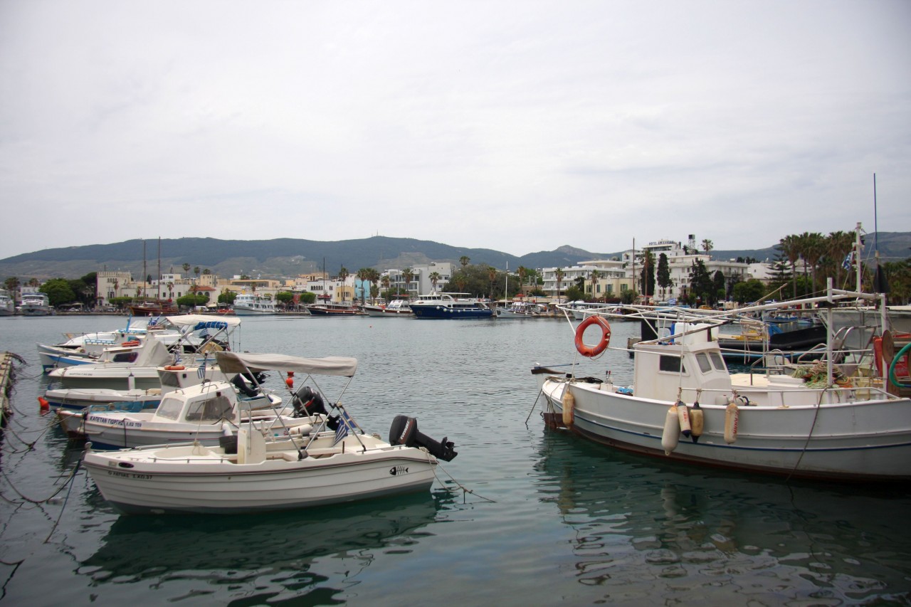 In Kos ist es ersteinmal schwierig einen Parkplatz zu finden - aber es gelingt uns ganz am hinteren Ende des Hafens