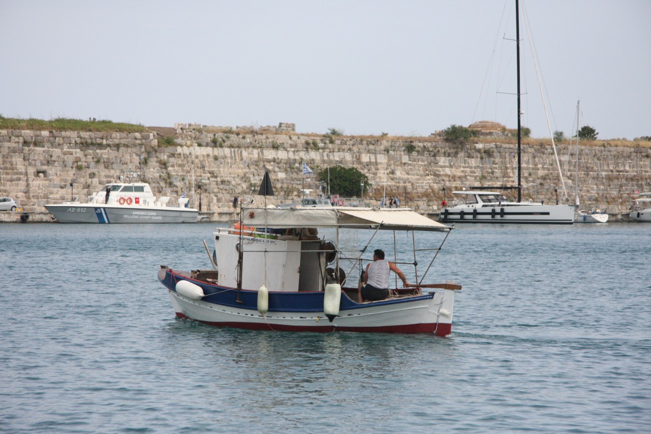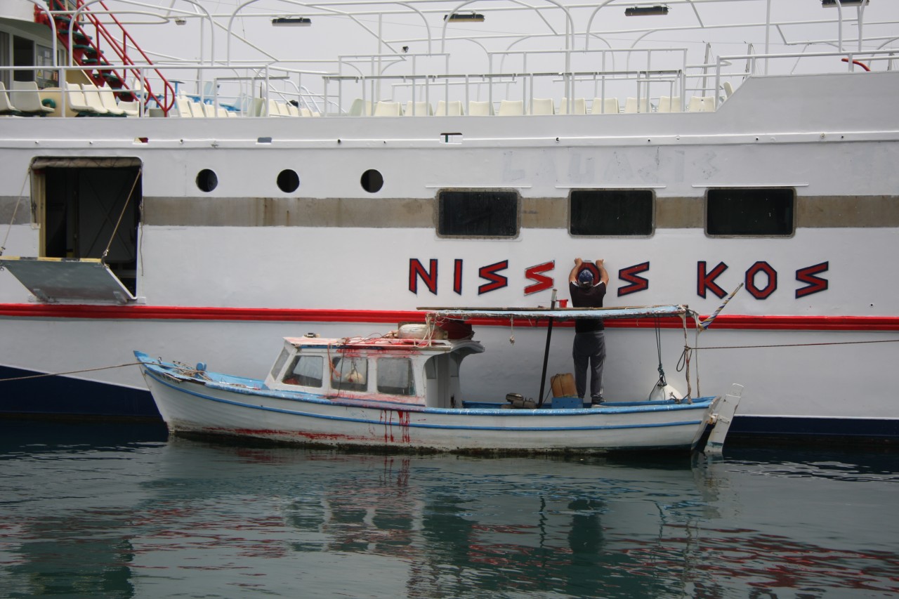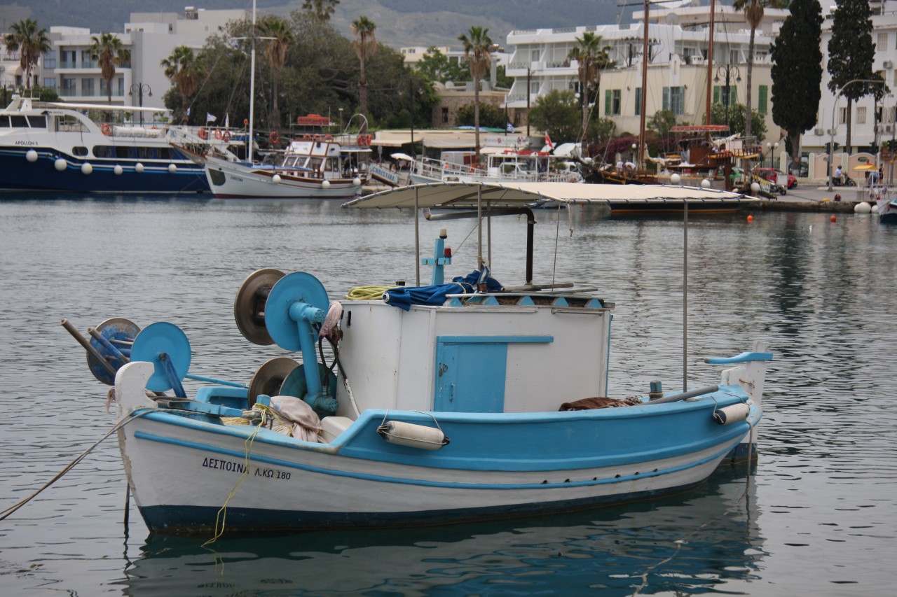 In Kos ist es ersteinmal schwierig einen Parkplatz zu finden - aber es gelingt uns ganz am hinteren Ende des Hafens