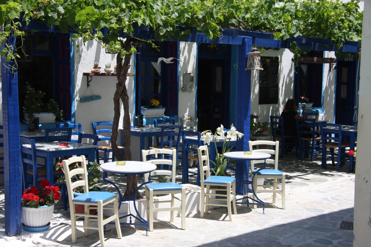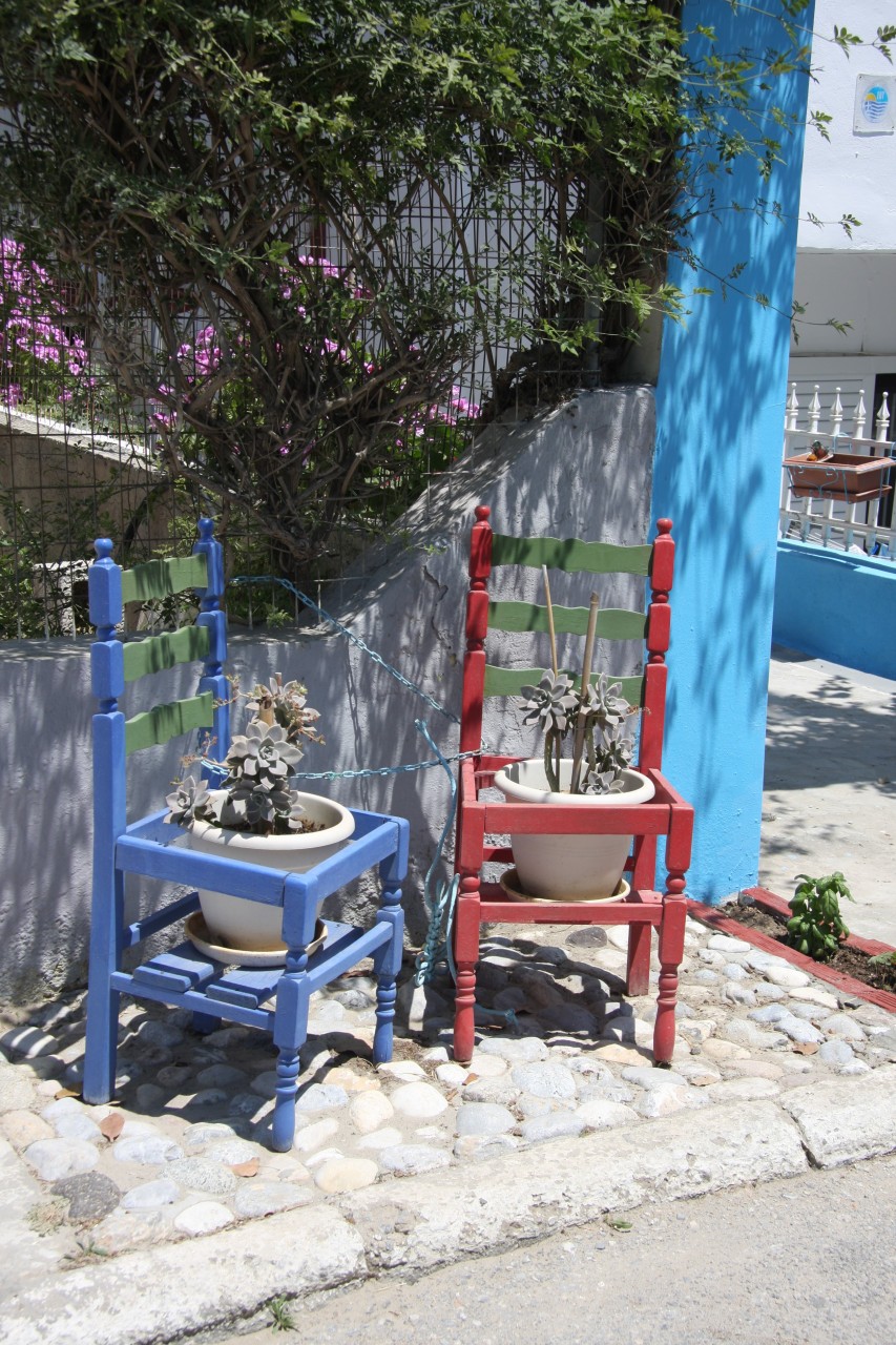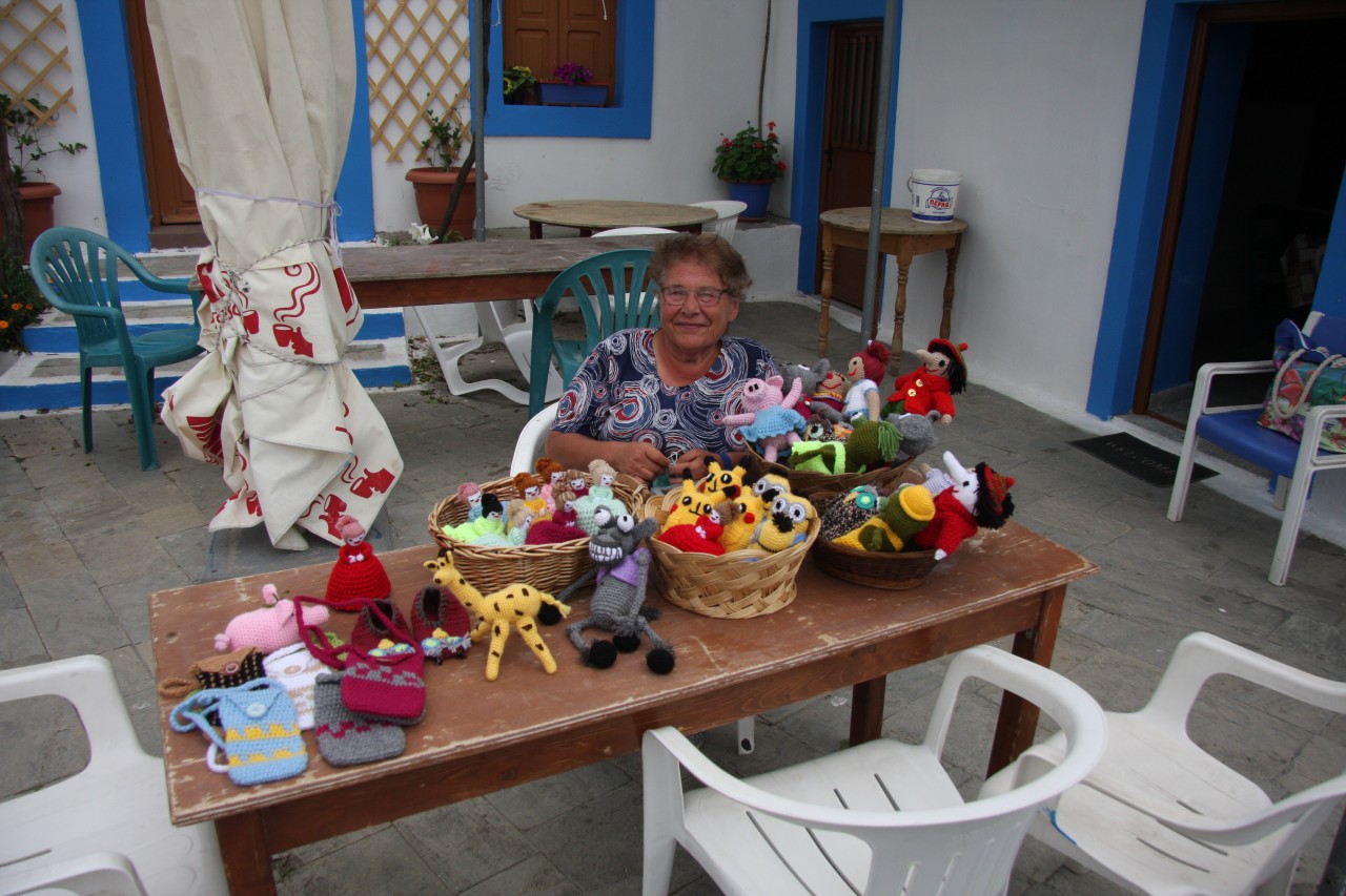In einem Geschäft mit einem sehr netten alten Griechenehepaar habe ich ein schönes blaues Leinenkleid erstanden. Die ersten Postkarten sind auch gekauft. Mal schauen, ob sie diesmal ankommen