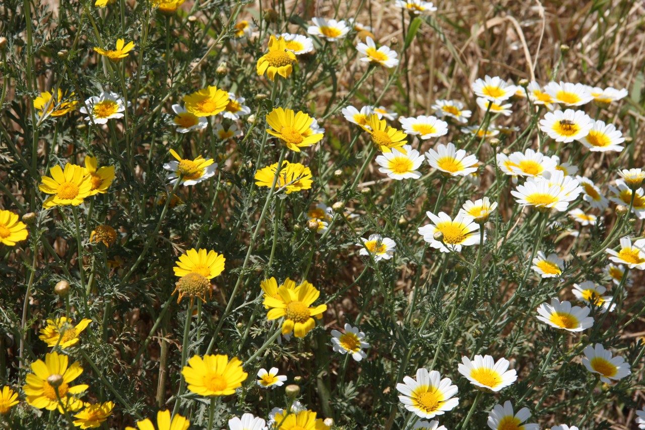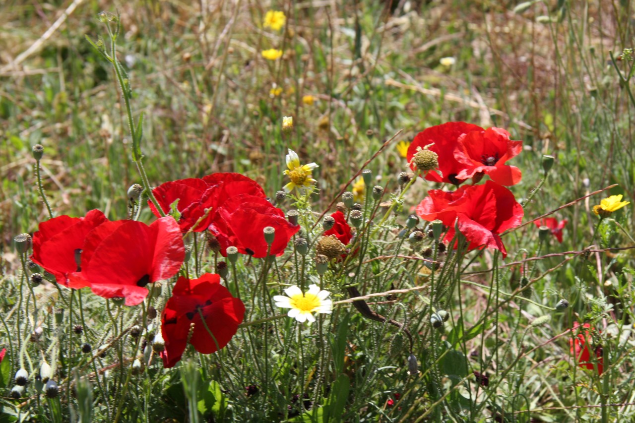 Am Randes des Ortes gibt es brachliegende Gebiete mit wilden Blumenbildern