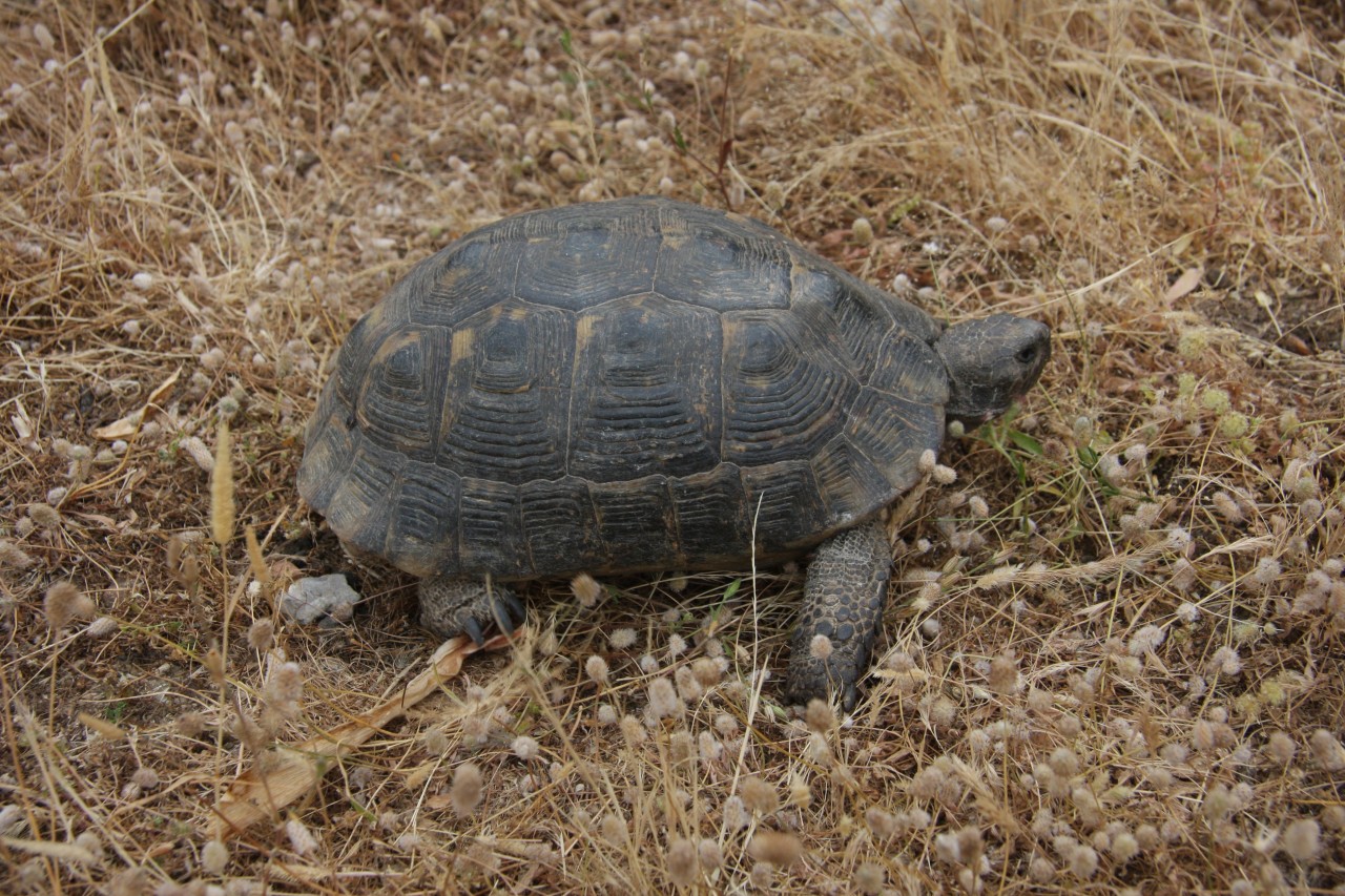 Bei uns hieß dieser Art damals Old Pili. Schildkröten gab es überall und unsere Kinder haben zwei winzige mitgenommen und im Ort immer arbeiten lassen. Die passten in eine Streichholzschachtel. Aber in einem ausgetrockneten Brunnen haben wir eine auf dem Rücken liegende Schildkröte gerettet