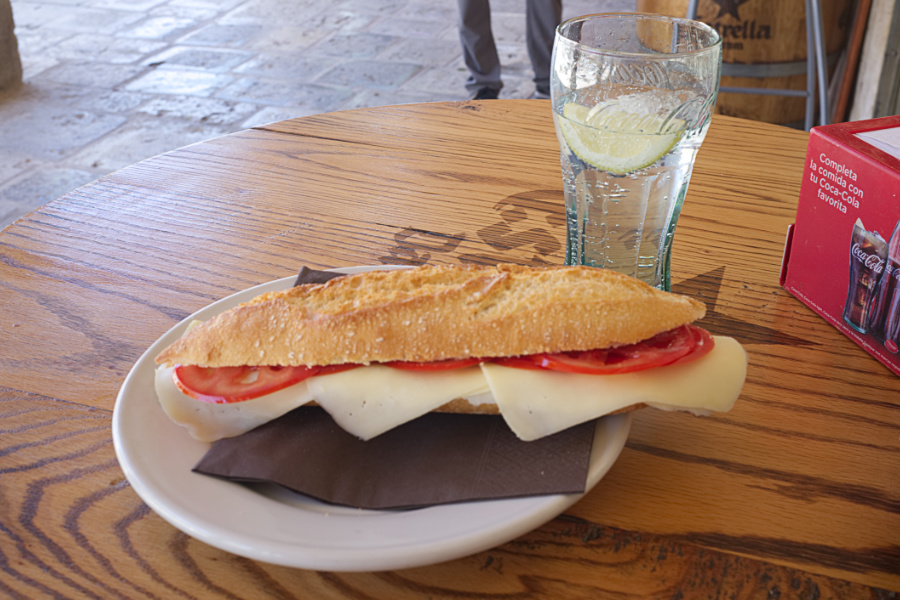 Der Ort Castrojeriz zieht sich ganz schön in die Länge. Glück für mich, denn so fand ich noch eine Bar, in der ich ein Käsebaguette mit Tomaten bekam, denn zum Mittagessen hatte ich ja nur noch die Banane und die leckeren Walnüsse (garantiert aus Spanien und nicht aus Kalifornien, wie mir der nette Spanier versicherte.)