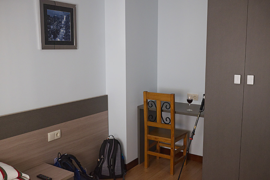 Ich habe ein schönes Zimmer, mein Rucksack ist auch da, das klappt perfekt. Ich bin so froh, dass ich diesen Dienst in Anspruch nehme, denn selbst mein kleiner Tagesrucksack wird mir schon zu schwer. Heute habe ich etliche Dinge in den großen Rucksack umgepackt, denn zum Beispiel brauche ich keine Powerbank. Ich gehe ja nicht pausenlos online, sondern nur in den Pausen und da hält mein Akku durch.