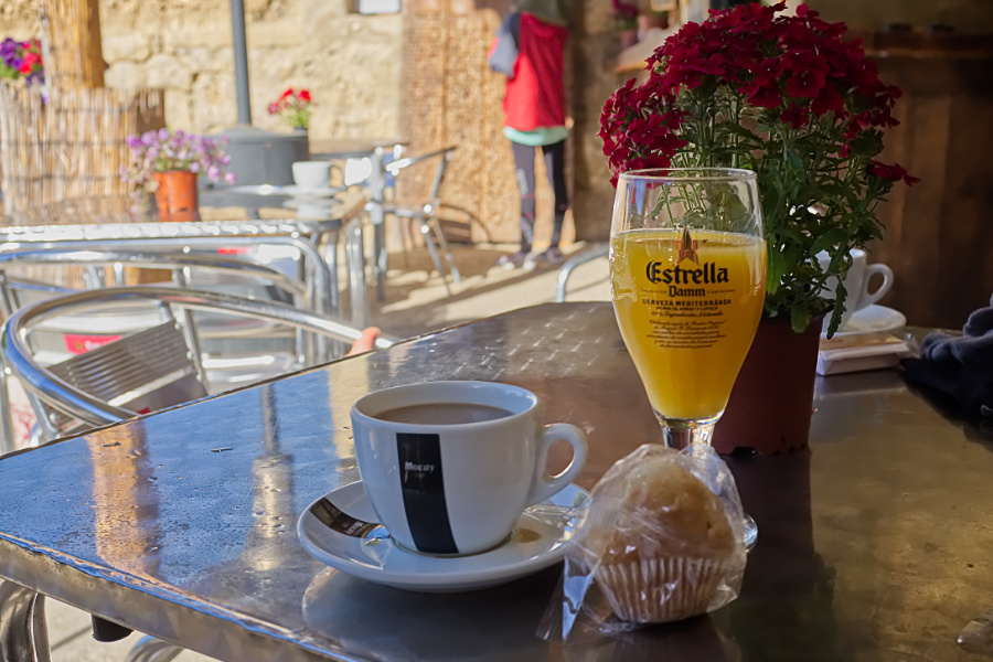 Der Ort Castrojeriz zieht sich ganz schön in die Länge. Glück für mich, denn so fand ich noch eine Bar, in der ich ein Käsebaguette mit Tomaten bekam, denn zum Mittagessen hatte ich ja nur noch die Banane und die leckeren Walnüsse (garantiert aus Spanien und nicht aus Kalifornien, wie mir der nette Spanier versicherte.)