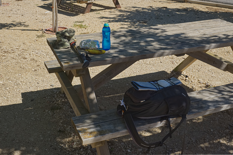 Unterwegs findet man selten einen schattigen Platz. Ich hatte Glück, dass ich vor den Fahradfahren ankam (Bild 4)