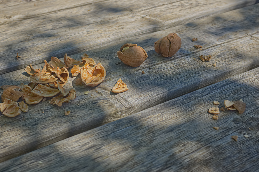 Als Wegzehrung hatte ich mir eine Banane und ein Käsebaguette gekauft. Ich fand eine geeignete Picknickstelle und freute mich auf die Brotzeit. Die Überraschung war groß, denn der Käse entpuppte sich als roher Schinken. Das kann ich natürlich nicht essen. Ich fande jedoch einen Abnehmer und wurde mit Walnüssen belohnt.