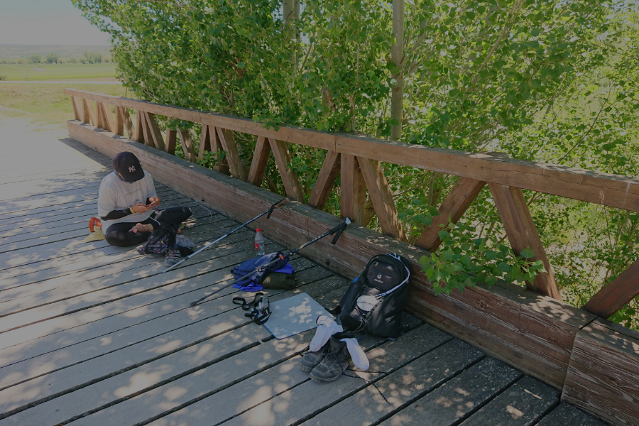 An der Brücke fand ich den einzigen Platz mit betwas Schatten. Das nutzte ich noch einmal aus und das war auch gut so.