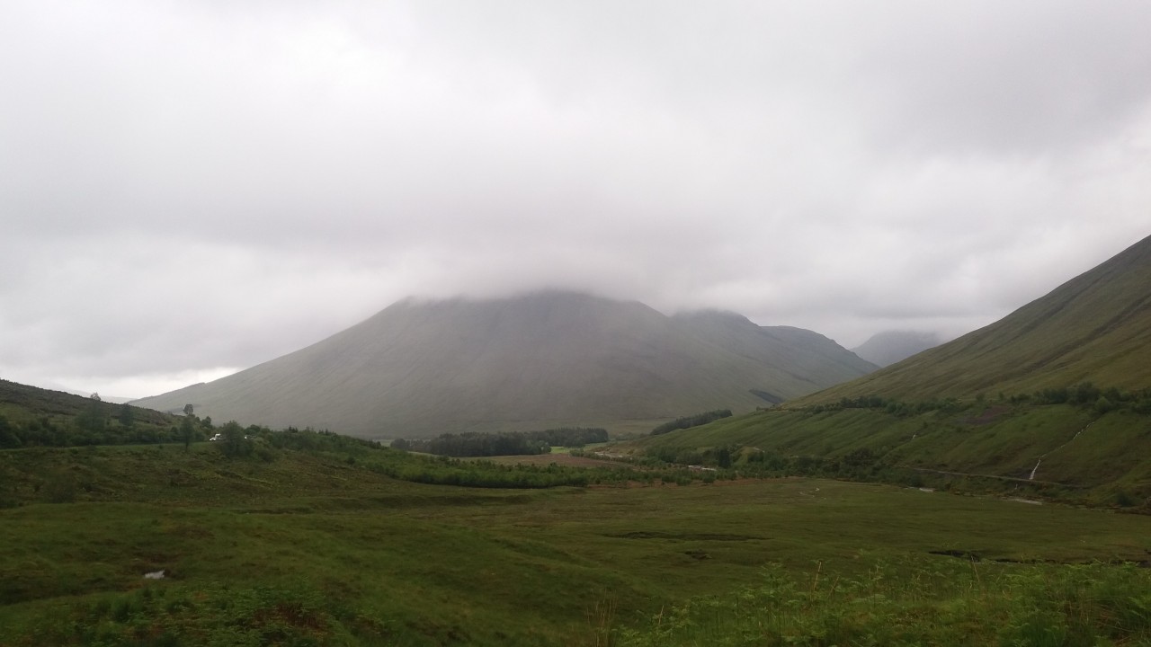 Erst die Anja im Hostel abgesetzt, zog es mich anschließend noch einmal nach Glencoe. Gestern war ja alles zugezogen, heute konnte man zumindest die Berge erkennen.
