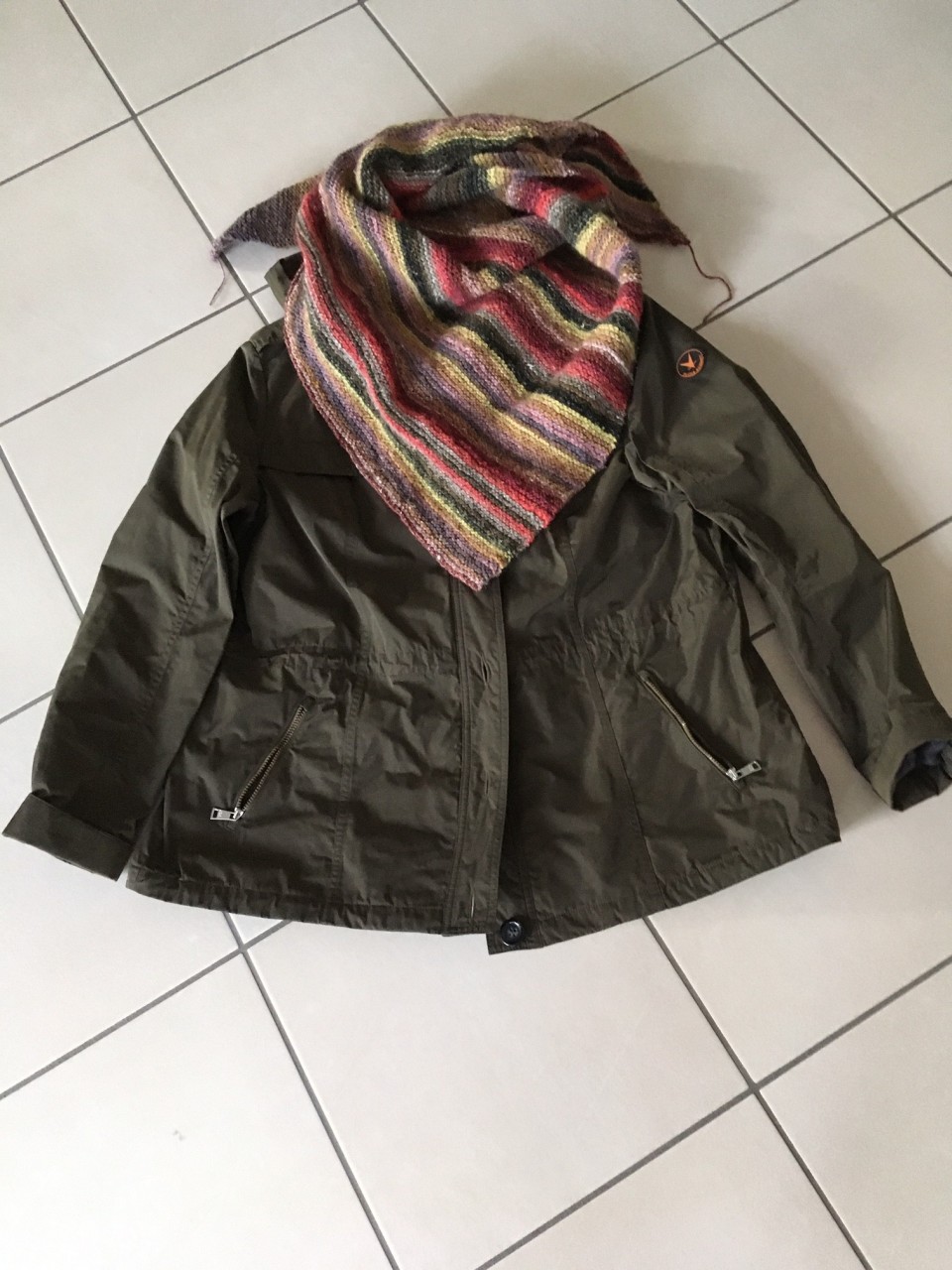 Das vers ich jetzt gerade nicht. Ich hatte in der Zwischenzeit ein weiteres Tuch mit dickere Wolle erstellt. Dieses ist erneut asymmetrisch geworden. Alle Tücher mit dünner Wolle sind symmetrisch